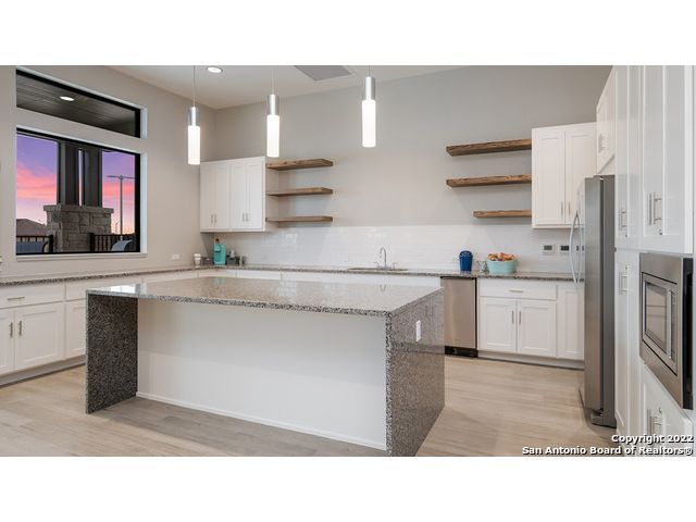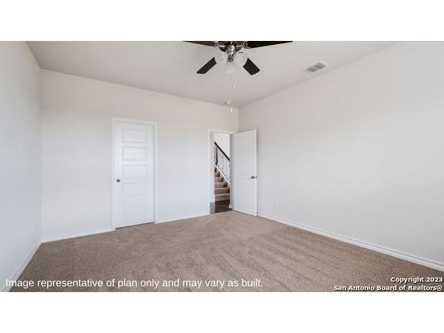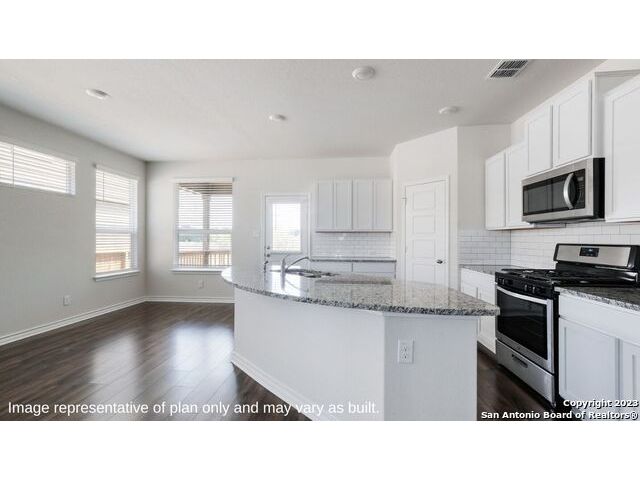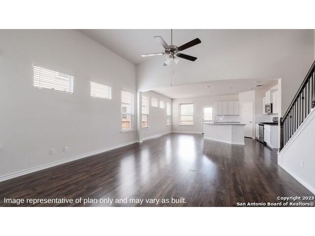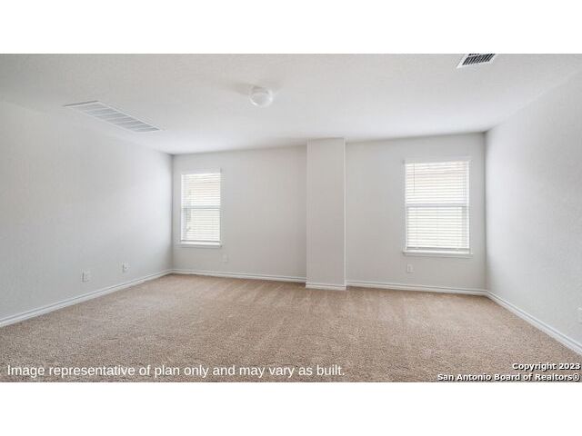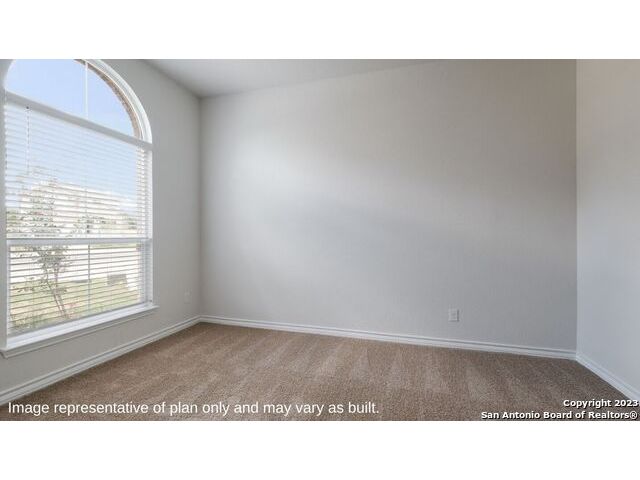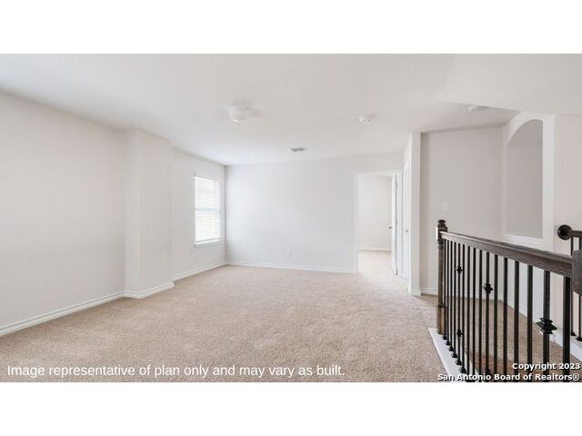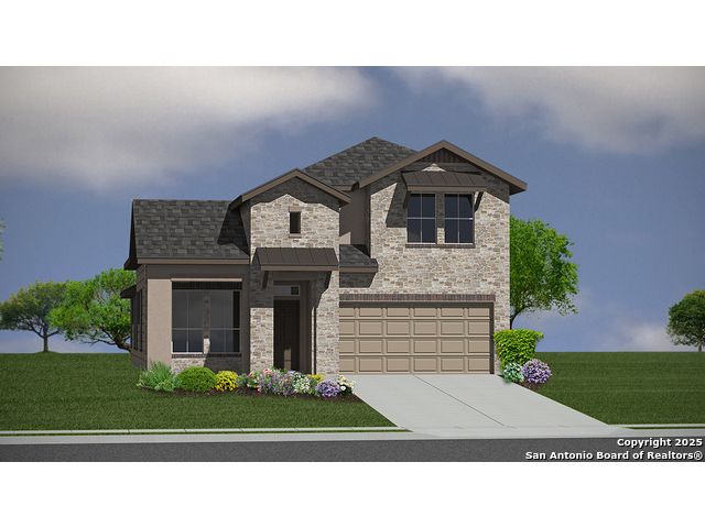 Step into The Caspian floor plan at Riverstone at Westpointe in San Antonio, TX. This home showcases 2 classic front exteriors, full yard landscaping and irrigation and a 2-car garage. Inside this 4 bedroom, 2.5 bathroom home, you will find 2597 square feet of living space designed to meet your needs and provide the perfect place to call home. The first floor offers an elongated entry way that open to a private study area before continuining to a spacious living room. The living room blends seamlessly into the dining area and kitchen in an open concept floor plan. Your kitchen is built for the ultimate home chef and offers spacious quartz countertops, an oversized kitchen island with a deep, single basin sink, a natural gas cooking range, and stainless steel appliances. Your main bedroom suite is located off the family room and offers quality carpet flooring and a ceiling fan. Large double windows provide plenty of natural light. The ensuite bathroom includes dual vanity sinks, a private room for the toilet, a tiled walk-in shower and a grand walk-in closet. The staircase leads to a spacious game room that is open to the living room below. You'll love this space with its large windows and storage closet. Three secondary bedrooms with walk-in closets and the second full bathroom are located off the game room. Additional features of this home include tall 9-foot ceilings, 2-inch faux wood blinds throughout the home, pre-plumb for water softener loop and more! You'll enjoy added security in your new D.R. Horton home with our Home is Connected features. Using one central hub that talks to all the devices in your home, you can control the lights, thermostat and locks, all from your cellular device.