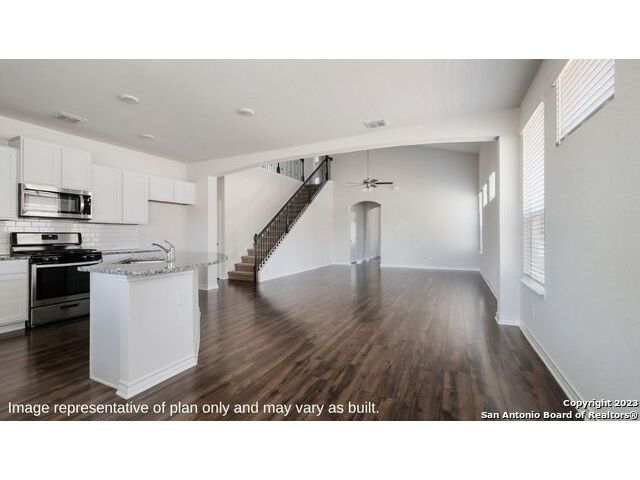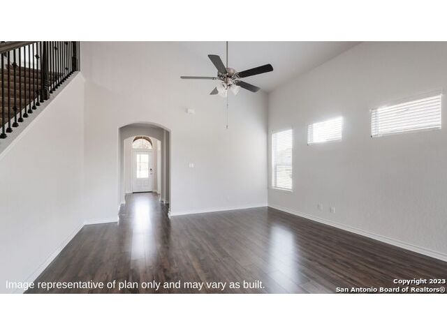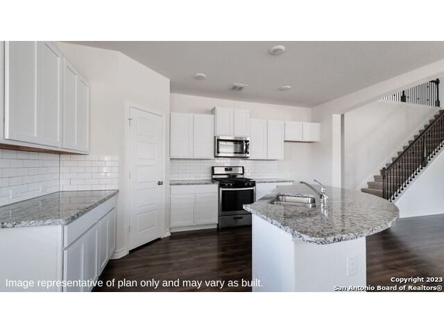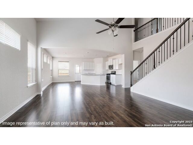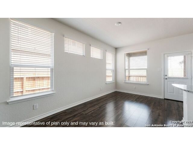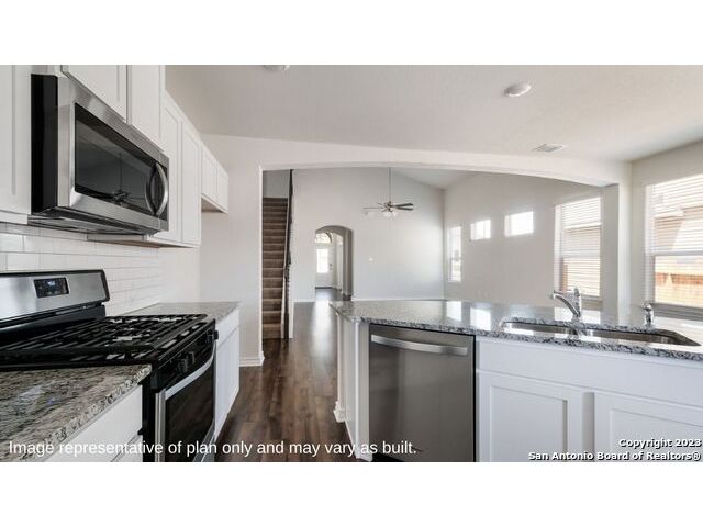 Step into The Caspian floor plan at Riverstone at Westpointe in San Antonio, TX. This home showcases 2 classic front exteriors, full yard landscaping and irrigation and a 2-car garage. Inside this 4 bedroom, 2.5 bathroom home, you will find 2597 square feet of living space designed to meet your needs. The first floor offers an elongated entry way that open to a private study area before continuining to a spacious living room. The living room blends seamlessly into the dining area and kitchen in an open concept floor plan. Your kitchen is built for the ultimate home chef and offers spacious quartz countertops, an oversized kitchen island with a deep, single basin sink, a natural gas cooking range, and stainless steel appliances. Your main bedroom suite is located off the family room and offers quality carpet flooring and a ceiling fan. Large double windows provide plenty of natural light. The ensuite bathroom includes dual vanity sinks, a private room for the toilet, a tiled walk-in shower and a grand walk-in closet. The staircase leads to a spacious game room that is open to the living room below. You'll love this space with its large windows and storage closet. Three secondary bedrooms with walk-in closets and the second full bathroom are located off the game room. Additional features of this home include tall 9-foot ceilings, 2-inch faux wood blinds throughout the home, pre-plumb for water softener loop and more! You'll enjoy added security in your new D.R. Horton home with our Home is Connected features. Using one central hub that talks to all the devices in your home, you can control the lights, thermostat and locks, all from your cellular device.