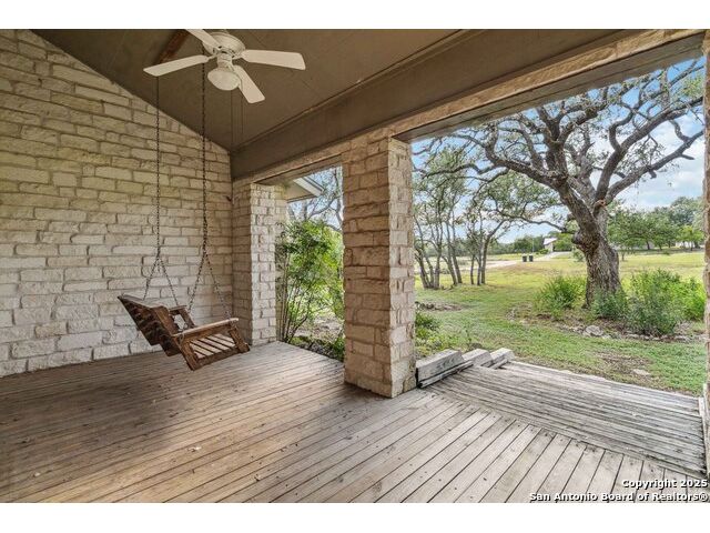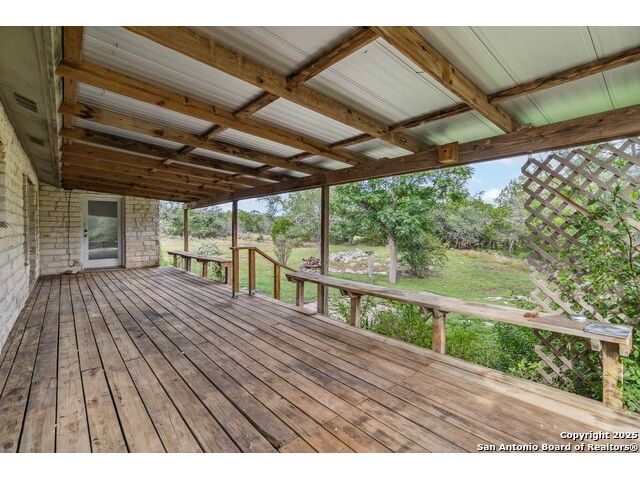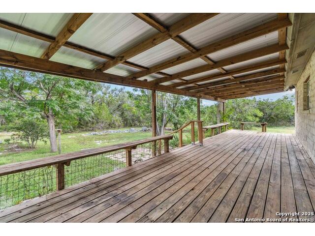 Beautiful Hill Country Retreat on 2.04 Secluded Acres - No HOA! Nestled among towering oak trees just 4 miles from Wimberley and 9 miles from San Marcos, this charming 3-bedroom, 2-bath ranch-style home offers a peaceful escape with the freedom of no HOA. Inside, you'll find a dedicated office, a formal dining room, and a cozy living area with a wood-burning fireplace and glass doors that open to a shaded back deck-perfect for morning coffee or evening gatherings. The spacious primary suite features private access to the deck, a large ensuite bathroom with a soaking tub, separate walk-in shower, and a comfortable layout ideal for rest and relaxation. Recent updates include a new metal roof and front-facing windows (2025), new flooring in the main living areas (2025), and a newly built well house. The property also includes a large shed for extra storage and plenty of room to park RVs, trailers, or recreational vehicles. The covered front porch with a swing invites you to slow down and take in the natural beauty and visiting wildlife. Located within San Marcos ISD, this home also offers access to Wimberley ISD with a simple application process and availability for bus transportation. With Austin-Bergstrom Airport just 45 minutes away and San Antonio Airport only 50 minutes, this location offers both seclusion and convenience. Whether you're looking for a quiet homestead or a weekend retreat, this Hill Country gem is ready to welcome you home. Some photos are virtually staged.