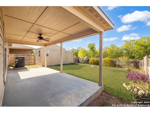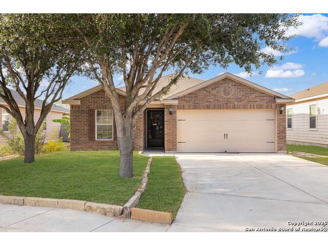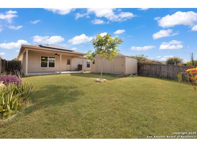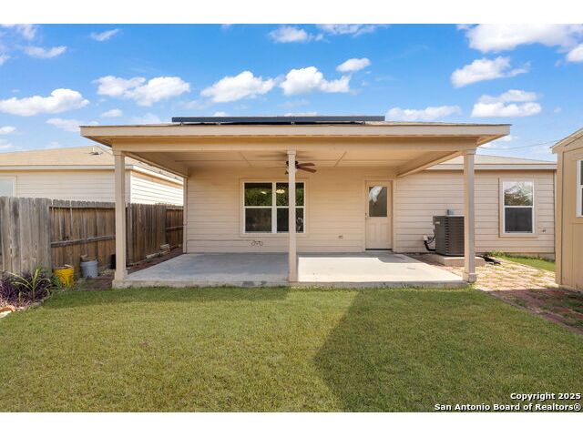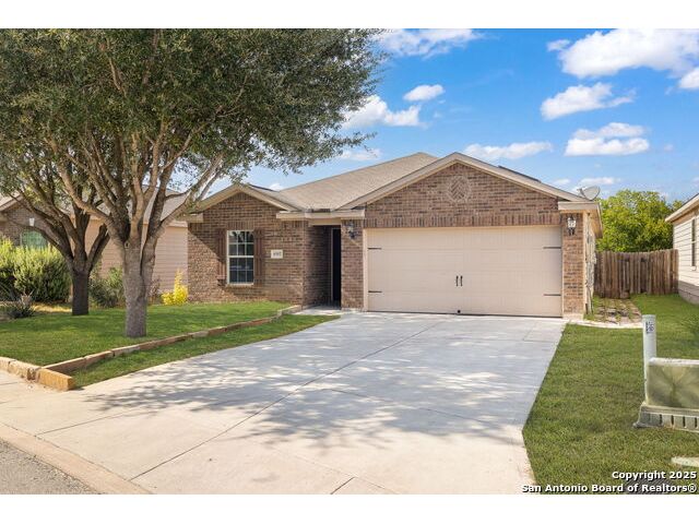 **VA Assumable Loan at low rate of 2.5 **Step into comfort with this inviting and updated 3 bedroom, 2 bath home featuring an open floorplan and a primary bedroom with an ensuite bathroom, a cozy formal dining room, elegant granite countertops, brand-new flooring throughout the home, and a reliable brand new air conditioning system (2025). Eco-conscious buyers will love the solar panels and the savings they provide. Electric bills usually $20 per month!! Enjoy added convenience with a water softener and reverse osmosis system. The front yard has been newly sodded and the fenced backyard includes a covered patio, versatile storage unit, fully equipped with electricity and a window A/C-perfect for a workshop, studio, or hobby space! Located in the desirable and welcoming Luckey Ranch subdivision, close to the neighborhood amenities, Medina Valley schools, Lackland Air Force Base and near major thoroughfares.