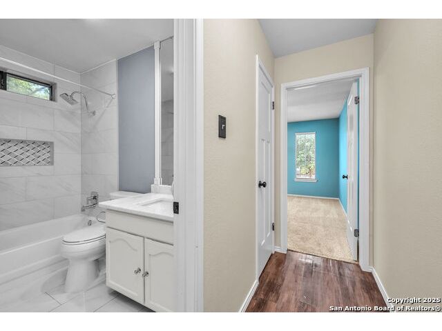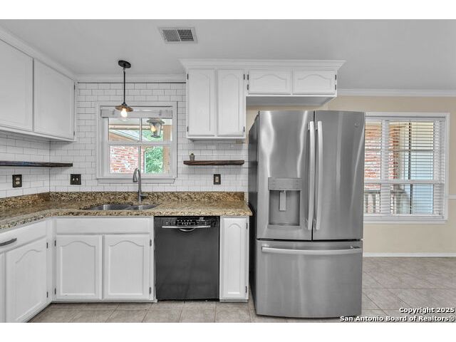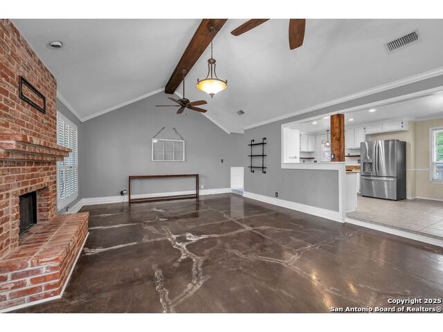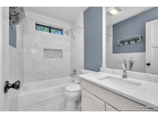 Move-in ready and full of character, this beautifully updated 3-bedroom, 2-bath home is nestled in the sought-after Encino Park community. Step inside to discover soaring 16-foot vaulted ceilings in both the living room and the primary suite, creating an open and inviting atmosphere ideal for entertaining or unwinding. The spacious primary suite offers dual walk-in closets and a luxurious, newly renovated bathroom featuring an Italian marble double vanity and an oversized walk-in shower that evokes a spa-like retreat. The guest bath has also been stylishly updated, enhancing the home's modern appeal and move-in-ready condition. Enjoy the charm and convenience of Encino Park's established community, known for its mature trees, neighborhood amenities, and friendly atmosphere. Outside, you'll appreciate easy access to Hwy 1604, Hwy 281, TPC Parkway, and a variety of nearby shops, restaurants, and entertainment options. Beautifully maintained and thoughtfully upgraded, this home blends modern comfort with timeless appeal-an excellent choice for those seeking a ready-to-enjoy property in one of North San Antonio's most desirable areas.