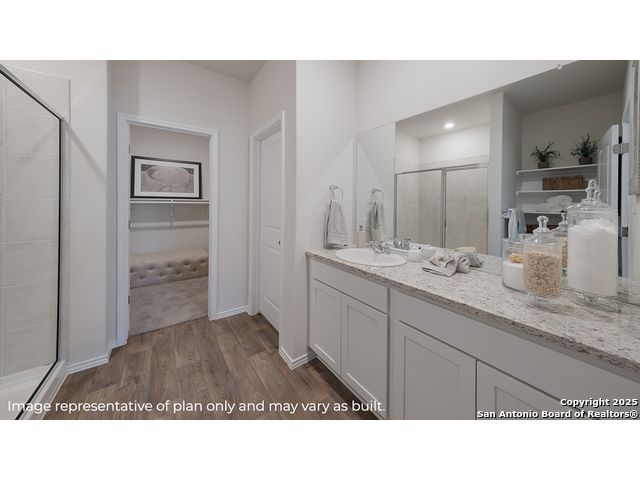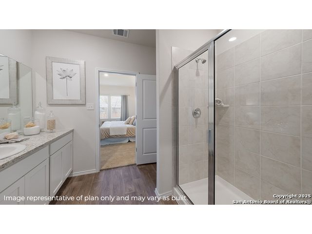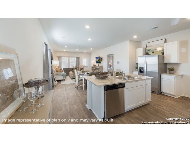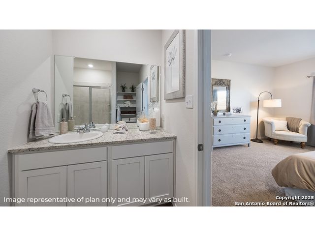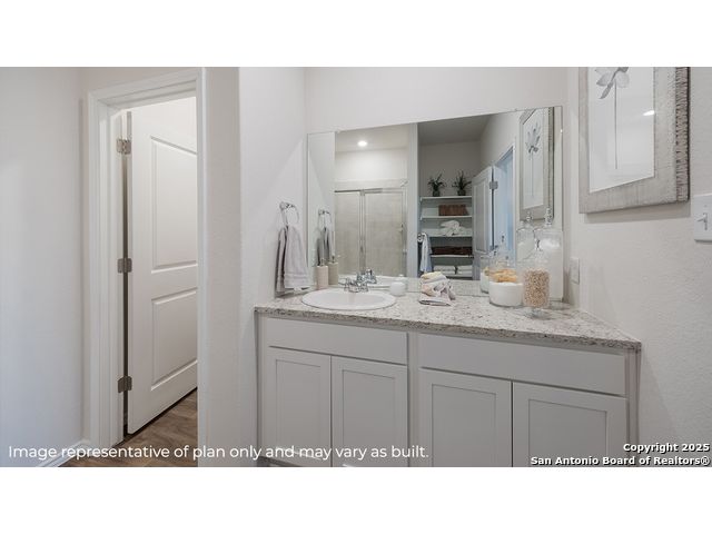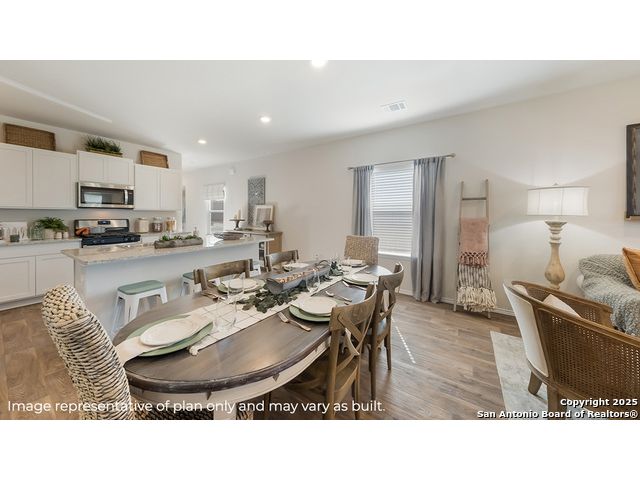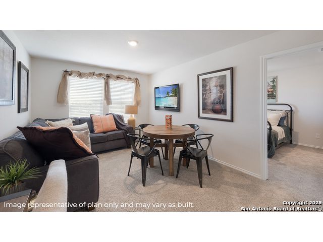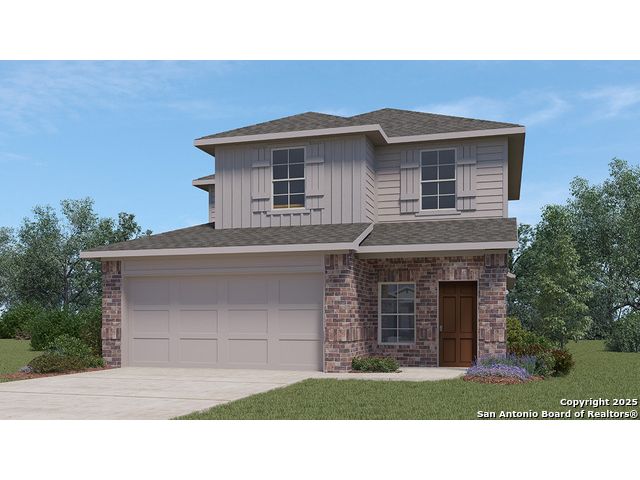 Introducing The Hanna, a two-story home featuring 4 bedrooms, 2.5 baths, and a 2-car garage in Riverstone at Westpointe, a new home community in San Antonio, TX. Here you will find a beautiful open-concept layout with 2042 square feet of functional living space. Your kitchen, dining area and family room blend together seamlessly with plenty of room for everyday living as well as plenty of natural light from the large windows. The gourmet kitchen includes quartz counter tops, stainless steel appliances, shaker style cabinetry and a kitchen island overlooking the living area. The main bedroom suite is downstairs and features quality carpet flooring and an attached bathroom complete with separate water closet, quartz vanity counter top, tiled walk-in shower and a large walk-in closet. The second story includes a full bathroom, a game room, and all secondary bedrooms. Whether these rooms become bedrooms or other bonus spaces, there is sure to be comfort. Additional features of The Hanna floor plan include sheet vinyl flooring in entry, living room, and all wet areas, quartz bathroom counter tops throughout the home, and rear covered patio (per plan) over looking full yard landscaping and irrigation. This home includes our HOME IS CONNECTED base package. Using one central hub that talks to all the devices in your home, you can control the lights, thermostat and locks, all from your cellular device.