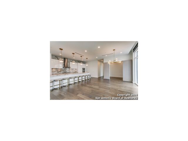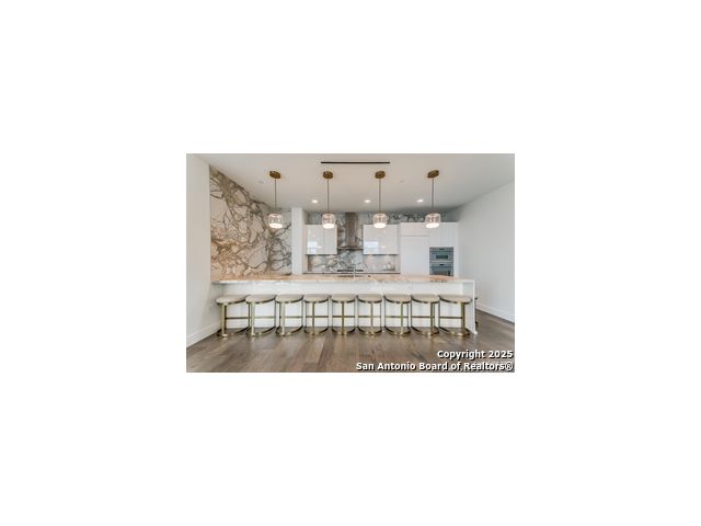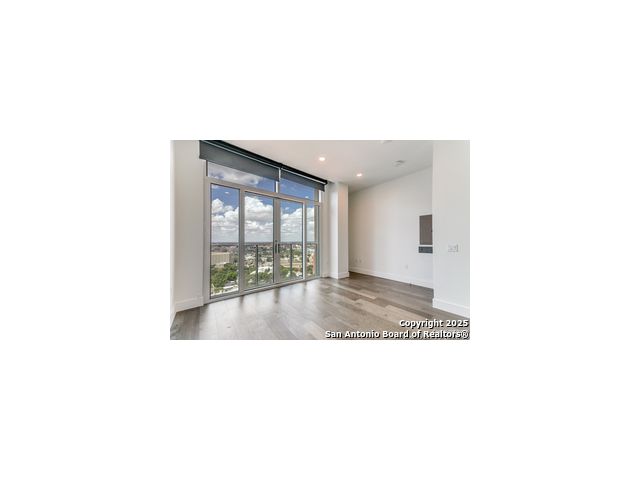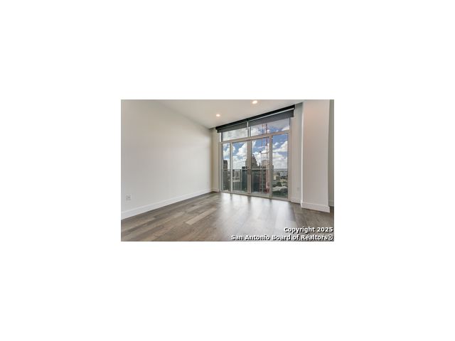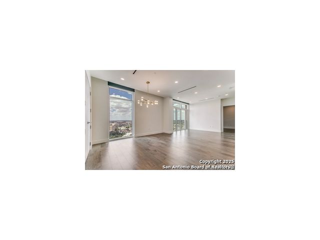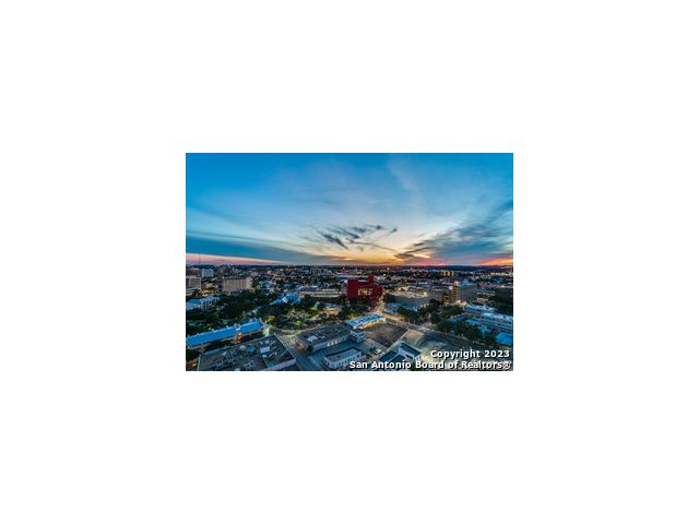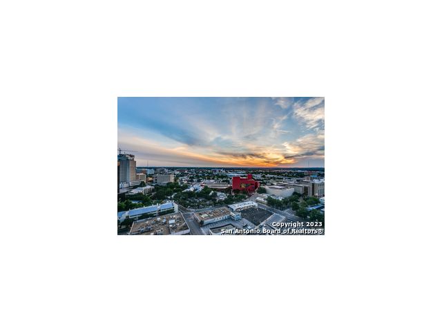 Enjoy living in luxury in the heart of San Antonio's exciting Arts District. This beautiful condominium above the Thompson Hotel has access to all the onsite amenities with exclusive concierge service. This open-concept floor plan has 10' ceilings with floor-to-ceiling windows showcasing stunning views of downtown and the River Walk. Warm wood floors flow throughout the condo. Spacious living and dining areas are open to the kitchen with breakfast bar, Thermador appliances, gas cooktop, and abundant storage. Private study with French doors off living area. Primary bedroom has spa-like bath with walk-in shower plus spacious custom closet. Secondary bedroom has private bathroom. 2 Parking spaces in garage.