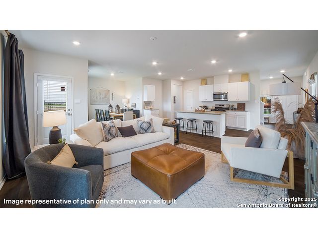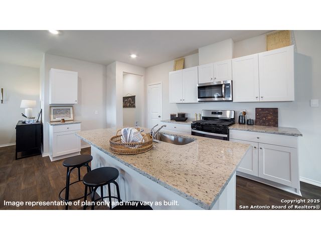 Welcome to The Kate floor plan, a two-story home located in Riverstone at Westpointe in San Antonio, TX. This home features 2 classic front exteriors, 4 bedrooms, 2.5 baths, a spacious 2-car garage and 2223 square feet of living space. An arched, covered patio (per plan) opens to the gourmet kitchen which includes quartz counter tops, stainless steel appliances and shaker style cabinets. The Kate is an open concept floorplan with the kitchen island overlooking a dining nook and living room so you'll never miss a moment. This home is unique in that all bedrooms are located upstairs, along with a loft and utility room. If entertaining downstairs and maintaining a private retreat upstairs is your goal, this floor plan is the one for you. The main bedroom has its own attractive ensuite bathroom that features a walk-in closet and all the space you need to get ready in the morning. You'll love a quartz single vanity sink, shaker style cabinetry, a tiled walk-in shower, and a separate water closet for the toilet. Your secondary bedrooms all have quality carpet flooring, large windows and closets. Whether these rooms become bedrooms, office spaces, or other bonus rooms, functionality is key. Additional features include sheet vinyl flooring in entry, living room, and all wet areas, quartz counter tops in all bathrooms, and full yard landscaping and irrigation. This home includes our HOME IS CONNECTED base package. Using one central hub that talks to all the devices in your home, you can control the lights, thermostat and locks, all from your cellular device.