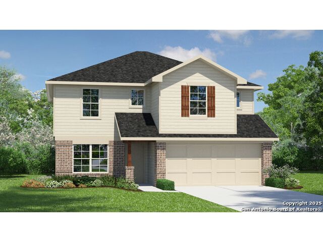Introducing The Lombardi, a two-story home featured in our Riverstone at Westpointe community in San Antonio, TX. This floor plan offers 3 classic front exteriors, a 2-car garage, and a full yard landscaping and irrigation package ensuring that your home looks its best every single day. Inside this 5 bedroom, 2.5 bathroom home, you'll find 2539 square feet of open-concept living. A deep-set, covered porch (per plan) opens to a foyer, formal dining room, and powder room. A butler entry connects the dining room and spacious kitchen lined with abundant cabinetry and quartz-top counterspace. Classic white subway tile backsplash and stainless steel appliances are a perfect accent, and a kitchen island with a deep single basin kitchen sink faces the living room. The private main bedroom suite is located off the living room and features a luxurious garden bath tub, a separate walk-in shower with tile surround, double vanity sinks, ceramic tile flooring, a separate door for the toilet and a large walk-in closet. Head up the stairs and tour the second floor of your brand new home! A versatile loft area greets you at the top of the stairs, complete with quality carpet and tons of natural light. Your four secondary bedrooms are located off the loft and include carpet flooring and spacious walk-in closets. Additional features include 9-foot ceilings, 2-inch faux wood blinds throughout the home, luxury vinyl plank flooring in the entryway, living room, kitchen, and dining room, ceramic tile at all bathrooms and utility room, pre-plumb for water softener loop, and more! You'll enjoy added security in your new home with our Home is Connected features. Using one central hub that talks to all the devices in your home, you can control the lights, thermostat and locks, all from your cellular device.