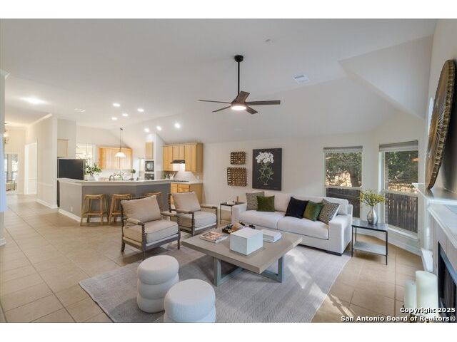 HOUSE HAS BRAND NEW FLOORING. New Roof with radiant barrier in attic to save on energy bills. New AC replaced in last 2 years. Brand new floors make this house Move In Ready! Motivated SELLER OFFERING $15,000 in buyer incentives! Immaculate One-Story Home in wonderful Gated Walker Ranch. Pride of ownership shines in this beautifully maintained 3-bedroom, 2-bath single-story home - over 2300 sq feet. Located in highly sought-after gated community of Walker Ranch. This single-owner occupant residence has been babied as owner never owned a pet in home. Large and mature majestic oak shade trees provide privacy and manicured lawn on large lot. This home welcomes you with a bright, open-concept living area featuring soaring ceilings, cozy gas fireplace, oversized windows flood living space with natural light and provide serene views of the lush backyard. The spacious kitchen/Living open concept is perfect for cooking and entertaining, offering an oversized island, ample cabinetry and new refrigerator. The master is a beautiful retreat with a generous walk-in closet. The spa-like bathroom has a garden tub, separate shower, and dual vanities. A versatile fourth room can be your office/ hobby room/ or 4th bedroom. Large washer /dryer area. Enjoy your morning coffee or evening breezes in the tranquil and quiet backyard. The mature landscaping and shaded beautiful oak trees offer privacy. The two-car garage offers additional storage and convenience. With this meticulously maintained interior, quiet surroundings, and prime location - this single story home is a rare gem.