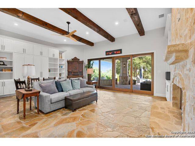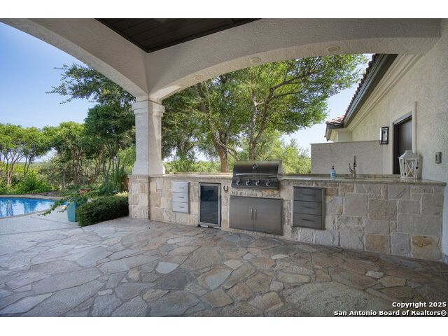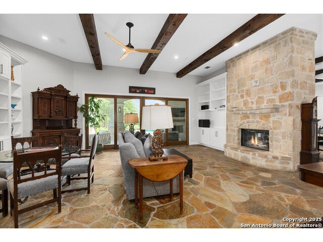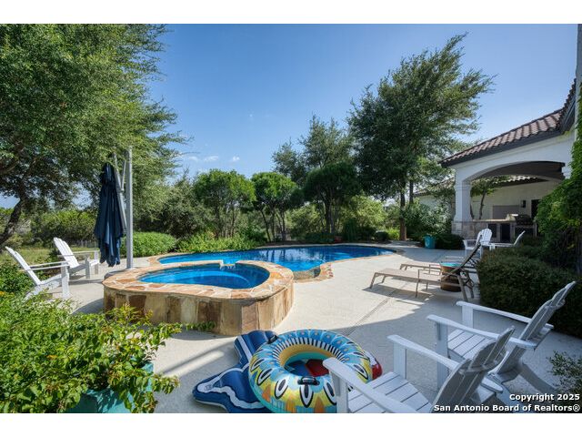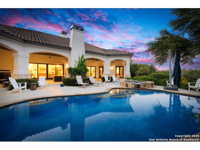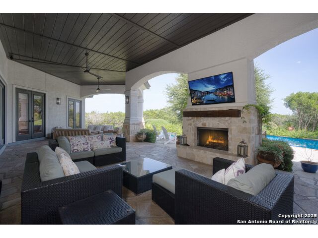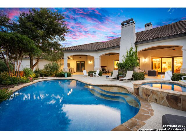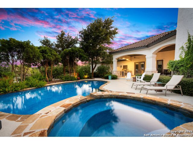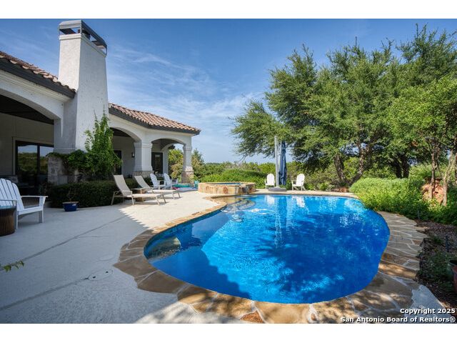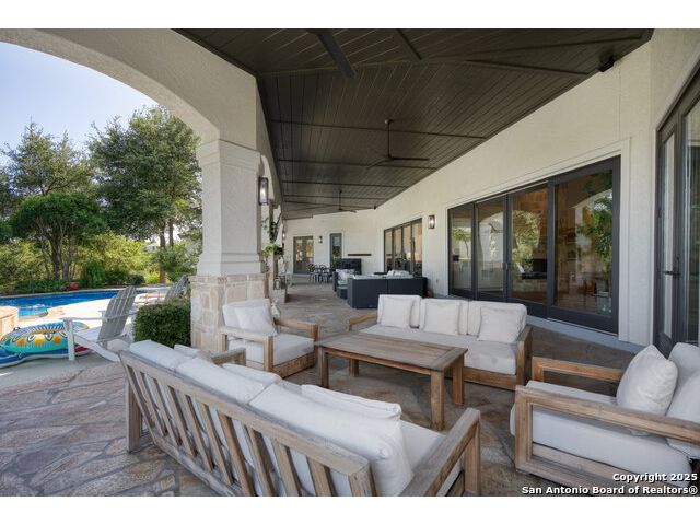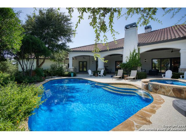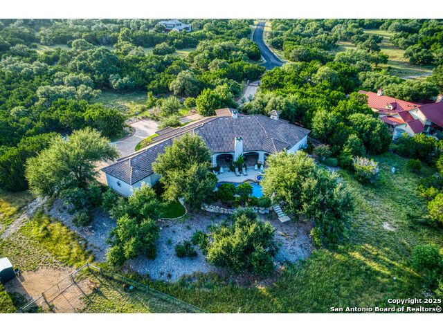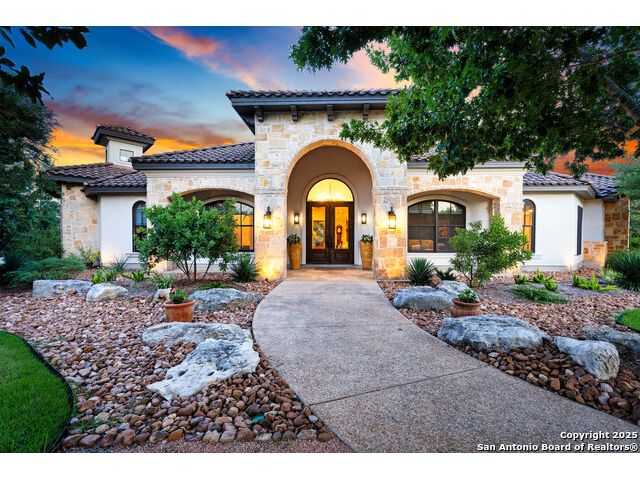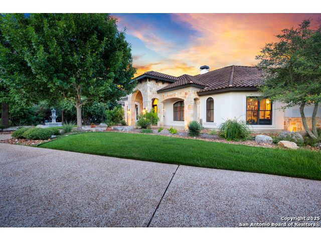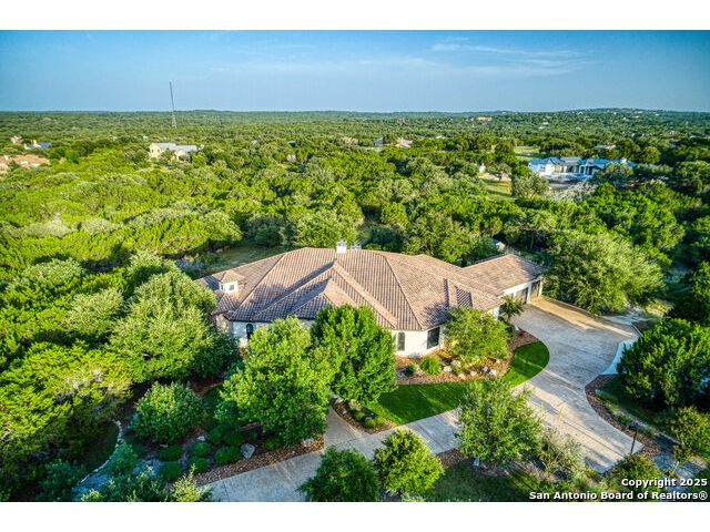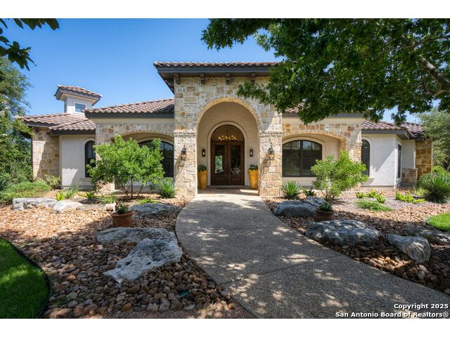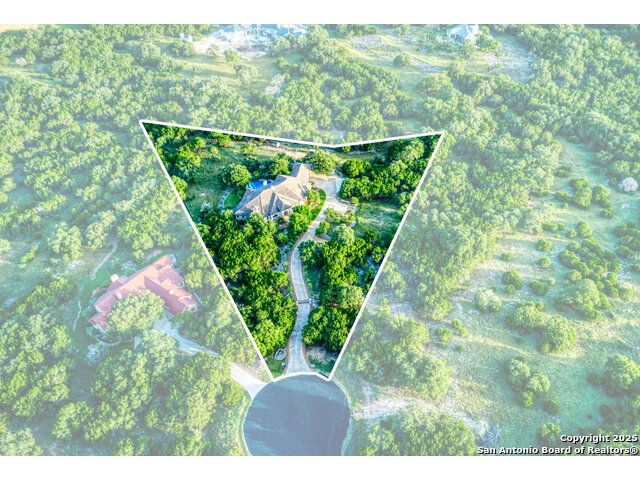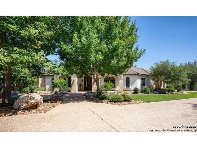 Nestled on a tranquil cul-de-sac, close to the Guadalupe River and private parks, this remarkable single-level luxury residence at 108 Cornerstone epitomizes sophisticated Hill Country living within the prestigious gates of the Cordillera Ranch private golfing community offering a unique lifestyle experience- the combination of private outdoor recreation and the exclusive community amenities. This recently remodeled sanctuary encompasses 4,530 square feet of meticulously crafted living space, featuring four bedrooms and three and one-half bathrooms designed with exceptional attention to architectural detail and sits on your private enclave of 5.6 acres. The dramatic open floor plan showcases walls of windows that flood the interior with natural light, creating seamless transitions between living spaces. The gourmet kitchen serves as the home's culinary centerpiece, boasting striking countertops, abundant storage solutions, Viking appliances, and a spacious working island perfect for both preparation and entertaining. Adjacent to the kitchen, a two-way fireplace enhances the dining area, providing romantic ambiance for intimate gatherings. The expansive primary bedroom retreat opens directly onto the patio, complemented by a spacious bathroom and generous walk-in closet with extensive built-ins. Additional en-suite bedrooms ensure privacy and comfort for family and guests alike. Outdoor living reaches extraordinary heights with multiple expansive patios featuring a welcoming fireplace, diverse seating arrangements, and an outdoor kitchen that transforms al fresco dining into culinary adventures. The fenced and gated property includes your very own half-mile trail system, ideal for family recreation and adventurous gatherings. Practical amenities include an additional fenced area suitable for paddock use or approved animals. Quality construction seamlessly blends modern conveniences with authentic Hill Country aesthetics throughout this meticulous home. Cordillera Ranch Master Golf Membership option provides access to championship golf facilities, pickle ball, tennis courts, multiple pools, diverse dining establishments, walking trails, parks, equestrian facilities, and shooting sports areas. The prestigious golf membership opportunity may be purchased separately, completing this exceptional lifestyle offering that encourages both relaxation and revitalization within one of Texas's most sought after communities.