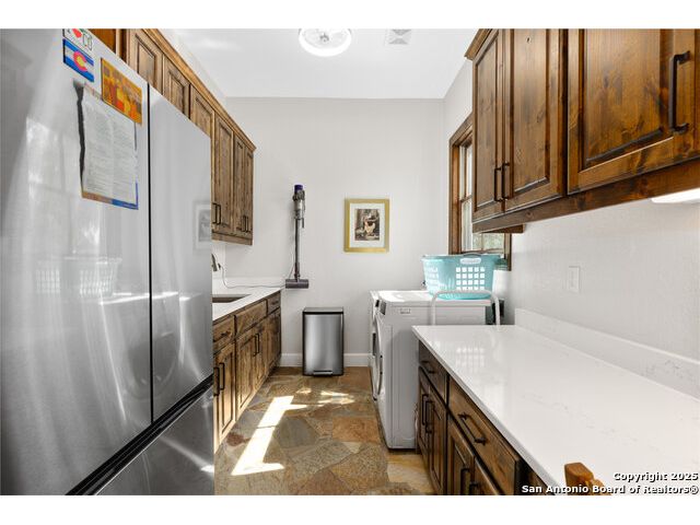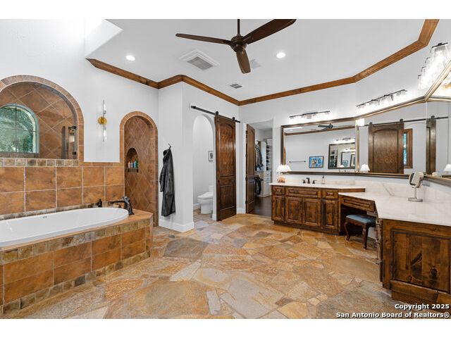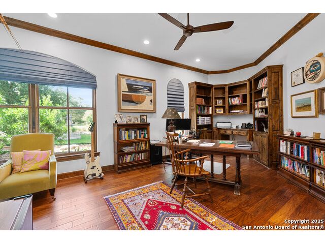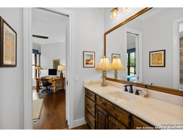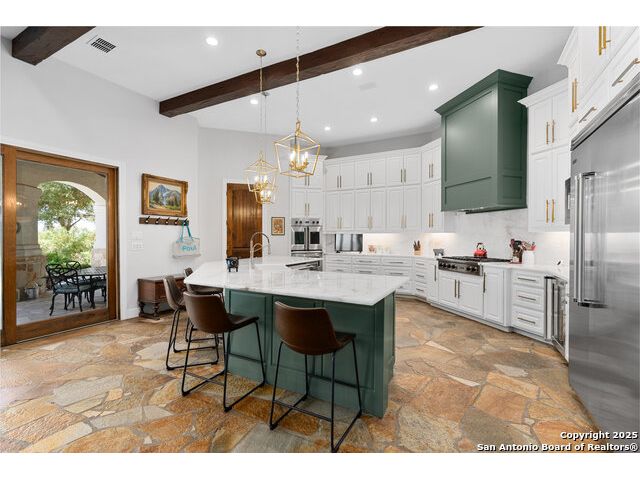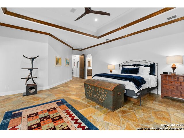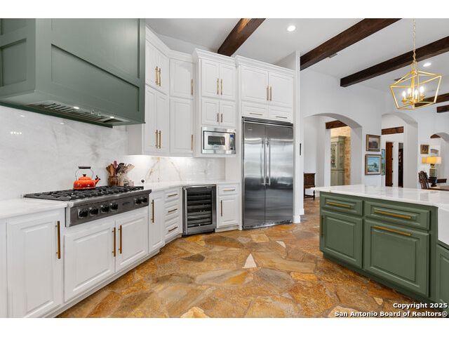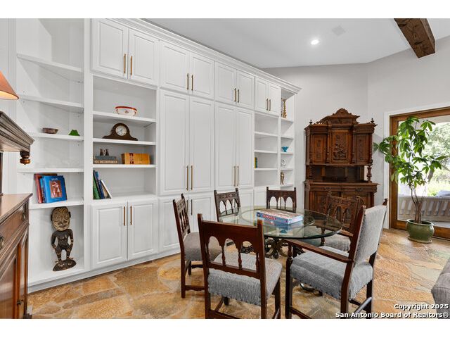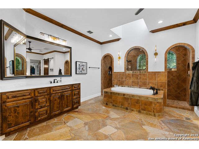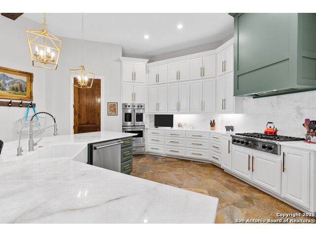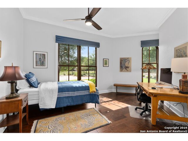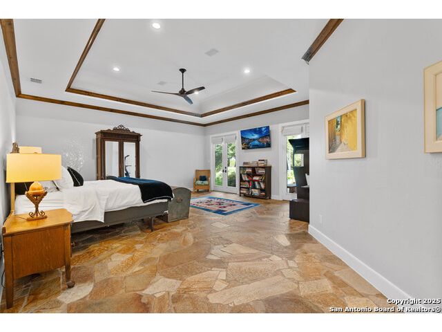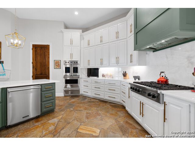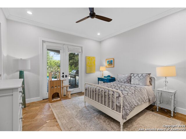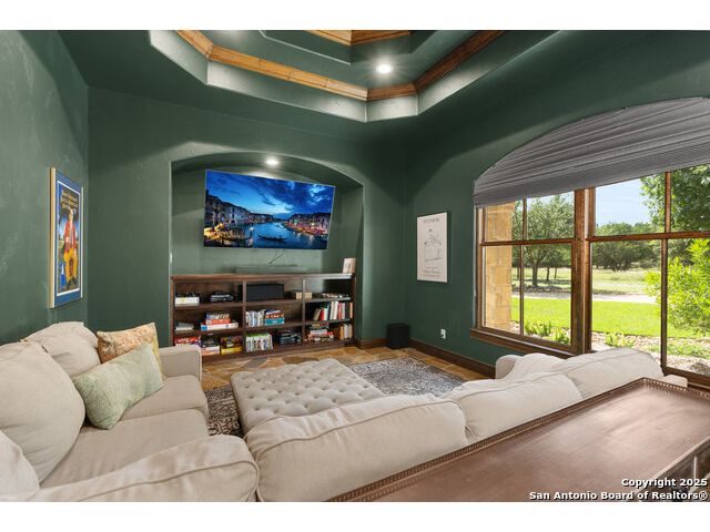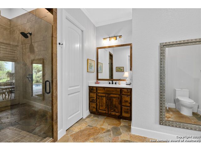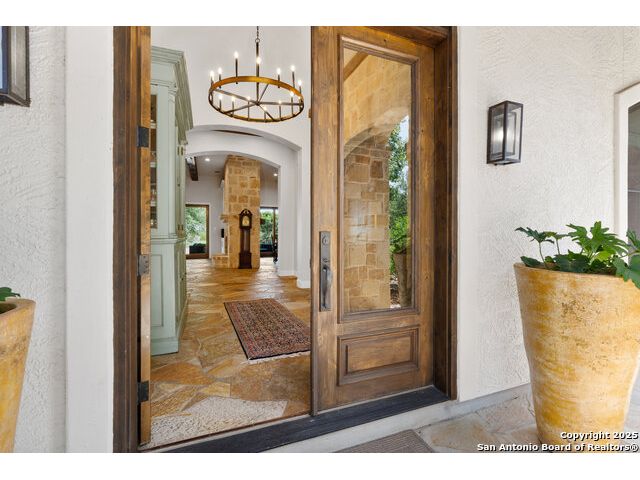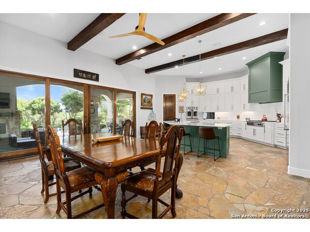 Nestled on a tranquil cul-de-sac, close to the Guadalupe River and private parks, this remarkable single-level luxury residence at 108 Cornerstone epitomizes sophisticated Hill Country living within the prestigious gates of the Cordillera Ranch private golfing community offering a unique lifestyle experience- the combination of private outdoor recreation and the exclusive community amenities. This recently remodeled sanctuary encompasses 4,530 square feet of meticulously crafted living space, featuring four bedrooms and three and one-half bathrooms designed with exceptional attention to architectural detail and sits on your private enclave of 5.6 acres. The dramatic open floor plan showcases walls of windows that flood the interior with natural light, creating seamless transitions between living spaces. The gourmet kitchen serves as the home's culinary centerpiece, boasting striking countertops, abundant storage solutions, Viking appliances, and a spacious working island perfect for both preparation and entertaining. Adjacent to the kitchen, a two-way fireplace enhances the dining area, providing romantic ambiance for intimate gatherings. The expansive primary bedroom retreat opens directly onto the patio, complemented by a spacious bathroom and generous walk-in closet with extensive built-ins. Additional en-suite bedrooms ensure privacy and comfort for family and guests alike. Outdoor living reaches extraordinary heights with multiple expansive patios featuring a welcoming fireplace, diverse seating arrangements, and an outdoor kitchen that transforms al fresco dining into culinary adventures. The fenced and gated property includes your very own half-mile trail system, ideal for family recreation and adventurous gatherings. Practical amenities include an additional fenced area suitable for paddock use or approved animals. Quality construction seamlessly blends modern conveniences with authentic Hill Country aesthetics throughout this meticulous home. Cordillera Ranch Master Golf Membership option provides access to championship golf facilities, pickle ball, tennis courts, multiple pools, diverse dining establishments, walking trails, parks, equestrian facilities, and shooting sports areas. The prestigious golf membership opportunity may be purchased separately, completing this exceptional lifestyle offering that encourages both relaxation and revitalization within one of Texas's most sought after communities.