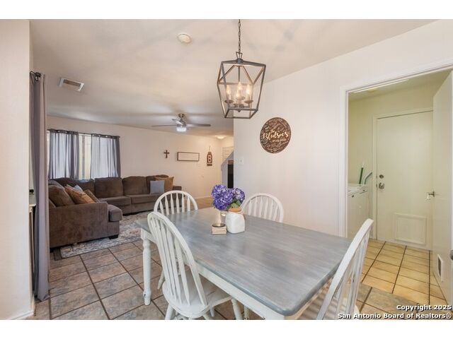 Welcome to this charming 2-story home offering 3 bedrooms and 2 bathrooms with 1,070 sq. ft. of living space on a 0.11-acre lot. Nestled in Northwest Crossing, this residence combines comfort and functionality with an inviting open floor plan that seamlessly connects the living, dining, and kitchen areas. A cozy fireplace anchors the living room, while the dining room flows effortlessly into the kitchen. The laundry room is thoughtfully situated between the dining area and the attached 2-car garage for easy access. Upstairs, you'll find all three carpeted bedrooms and two full bathrooms. The primary bed features its own ensuite bath with a single vanity, a shower, and a closet. Two additional bedrooms provide versatility for family, guests, or a home office. Step outside to a covered back patio that overlooks a spacious wooden-fenced backyard, perfect for relaxing or gatherings. The home also features a new HVAC system installed in 2023 with a 10-year transferable warranty, offering added peace of mind. As part of the Northwest Crossing community, residents have access to outstanding amenities including a pool, park, tennis courts, and jogging trails. The home is just minutes from Northwest Crossing Elementary School and W.Z. Burke Elementary School, with nearby access to W Loop 1604 N for shopping, dining, and everyday conveniences.