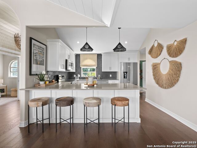 Welcome to lakeside luxury! This recently fully-remodeled home sits on a lush 0.60-acre waterfront lot in the Village Shores subdivision. With 4 bedrooms, 3 full baths, and 3,359 sq ft of thoughtfully designed living space, it's the perfect blend of comfort, elegance, and entertainment. The main floor boasts a spacious living room, island kitchen, office, and a split-bedroom layout. Entertain downstairs with a media room, game room and bar, additional bedroom, full bath, and a secure safe room. Additional convenience comes with a three-car garage and extra storage for lake toys. Relax outdoors under mature trees on the covered patio or deck, overlooking private lake frontage with effortless access to Canyon Lake Marina and Boat Ramp 1. High-end finishes, Texas Hill Country design, and a prime Waterfront location complete the picture. Schedule your showing today!