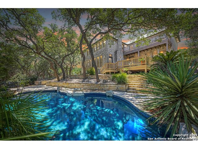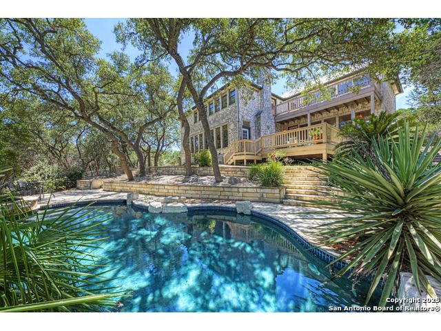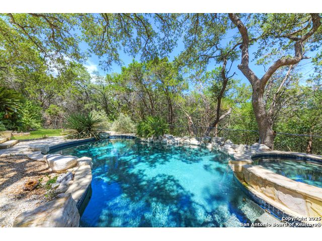 Super Seclusion, Elegance, space, and comfort define this extraordinary home nestled on 2.64 acres in the exclusive gated community of Winchester Hills. Boasting nearly 4,900 square feet, this residence offers the perfect balance of refined living and relaxed Hill Country charm, just north of 281 with easy access to H-E-B, Target, Sprouts, Alamo Drafthouse, and countless dining and shopping destinations. From the moment you arrive, stunning curb appeal and a detached garage set the stage for what's inside. The sunken living room, complete with a fireplace , A spacious eat-in kitchen with a large island, abundant cabinetry, and expansive countertops creates the heart of the home. Natural light pours in through numerous windows, highlighting the open layout and expansive rooms throughout. The primary suite is a retreat of its own, with ample space for a sitting area and a spa-like en suite bathroom. Secondary bedrooms are equally generous, offering comfort and versatility. Step outside to discover your private backyard oasis. A shimmering pool shaded by mature trees, a relaxing spa, and expansive grounds invite you to entertain, unwind, or design the outdoor paradise of your dreams. there is a Separate 1 car garage for toys, workshop or your very own mancave. This rare gem in Winchester Hills combines luxury, privacy, and convenience-making it a true San Antonio treasure.