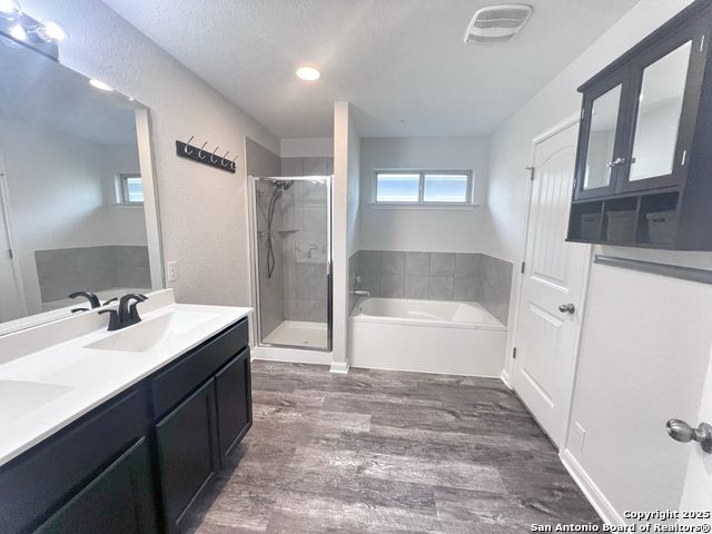 This beautifully maintained 3-bedroom, 2-bath home in Augustus Pass features a light-filled, open floor plan designed for comfortable living and easy entertaining. The spacious kitchen offers gas cooking, an oversized island, a deep upgraded sink, a built-in microwave, and a water softener. The private owner's suite includes dual vanities, a separate vanity counter, and a relaxing tub with a separate shower. Upgraded landscaping in the front and back enhances curb appeal, while the fenced backyard is perfect for outdoor gatherings. Located in a neighborhood with a park and playground and served by New Braunfels ISD, this 1,635 sq ft home blends style, function, and convenience.