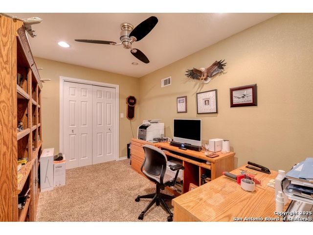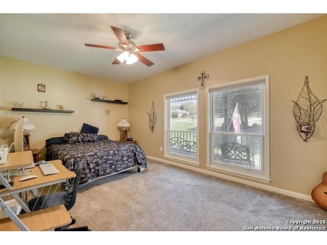 Discover comfort and elegance in this beautifully designed residence featuring a private backyard with an in-ground pool-perfect for unwinding after a long day. The main level offers 4 spacious bedrooms and 2.5 bathrooms, including the primary suite with dual vanities, two walk-in closets, and a full bath. Upstairs, enjoy a versatile second living area (ideal as a game/media room), a private office, and a convenient half bath. The home provides multiple dining areas, a breakfast bar, abundant built-ins, and generous storage throughout. The downstairs living area is enhanced by a cozy fireplace and tile flooring. The kitchen comes fully equipped with all appliances, and the washer/dryer convey with the sale. The detached 2-car garage features a mini-split AC system and an EV charging station. Additional amenities include a sprinkler system, screened-in back porch, open patio, and more. Set on a 0.65-acre lot with mature oak, crape myrtle, and other trees, this property combines natural beauty with modern convenience. Located just east of Luling, with easy access to Hwy 183 and IH-10. An additional 2+ acres are also available for purchase. Schedule your private showing today!