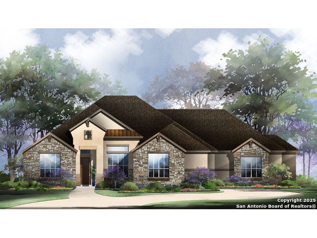 MLS# 1894225 - Built by Drees Custom Homes - Ready Now! ~ 4 Bed 4.5 Bath Ranch in San Antonio, TX. This one-story open floor plan is perfect for entertaining. Step off the front porch into a grand foyer, with a view of the open family room, kitchen, breakfast nook, and dining room. The spacious family room overlooks a back covered patio, perfect for outdoor entertaining. The luxury kitchen features a walk-in pantry, while the breakfast room is complete with a built-in buffet. Nearby you'll find a Gameroom, customizable to fit your lifestyle. Working from home? The Tobias offers a private home office with a walk-in closet and half-bath access. This floor plan includes four bedrooms, each with an ensuite bathroom and walk-in closet. The double doors of the primary suite reveal a luxury bathroom. The best part? A large walk-through shower with double showerheads! The Tobias also includes a three-car side-entry garage with extended storage space, foyer, and large laundry room.