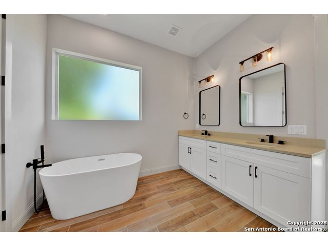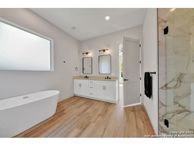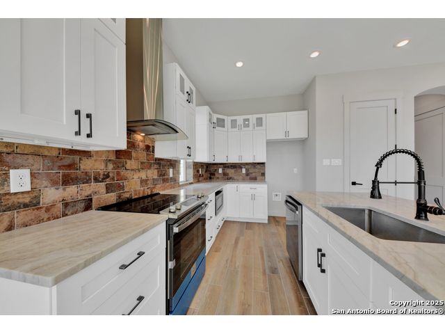 Gorgeous three bedroom, two and a half bath, dream home with office/study downstairs and versatile bonus room upstairs. Nestled on just over a half acre, in prestigious River Bluff Estates, this home gives you the best of country living in Castroville, within just minutes of all that San Antonio offers. Exquisite floor plan with soaring ceilings, beautiful and extremely functional kitchen and open, well flowing design. Speaking of design, the builder thought of everything! From the flexibility of the two bonus rooms, to the outdoor kitchen, to the well thought out provisions for security, sound, intercom, and CAT6 hard wired internet. Every square inch of this glorious home is well planned out for maximum utility. Whether you choose to take part in the fun activities around Castroville, or make the short trip to the city, you are convenient to dining, entertainment, and shopping. Don't miss out on this Gem!