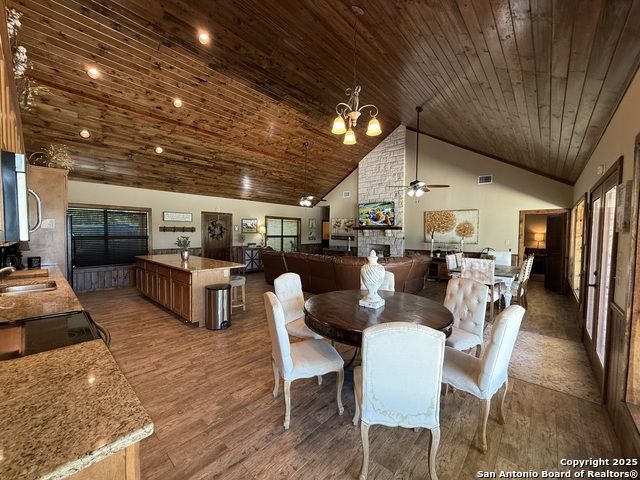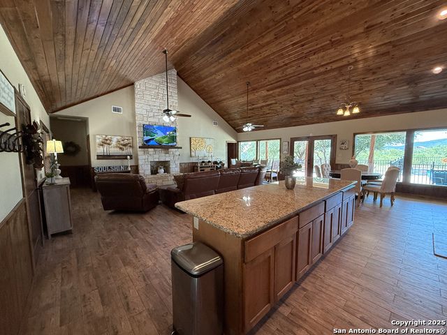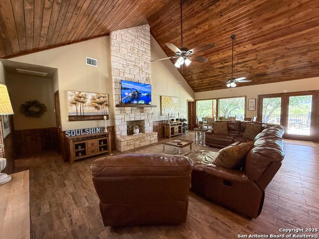 Nestled in the heart of the Texas Hill Country, discover the perfect blend of luxury and tranquility at this stunning 4-bedroom, 4.5 bathroom home in the sought-after Mountain Valley Subdivision of Concan, Texas. Currently income producing with Neal's Lodge, step inside "Casa Soulshine" to find an open concept living area with soaring ceilings, a cozy fireplace, and large windows that flood the space with natural light and showcase breathtaking views of the rolling Frio Hills and natural wildlife. The modern kitchen features granite countertops, all appliances, and a spacious island perfect for gatherings. Each bedroom is generously sized with their own flat screen TV, en-suite bathroom and closet. Outside, enjoy the ultimate Hill Country lifestyle with a private pool, large covered patio with a flat screen TV, in-ground firepit, BBQ pit, expansive open lot beyond the wrought iron fence all ideal for stargazing or hosting friends and family. Just minutes from the crystal-clear Frio River and the prestigious Frio Valley Ranch Golf Course, this property is a dream for outdoor enthusiasts and those seeking a serene retreat. Whether you're looking for a full-time residence, a vacation home, or a high-performing rental investment, this fully furnished property is ready to welcome you. Located near Garner State Park and the vibrant House Pasture Cattle Company music venue, this property offers the perfect balance of seclusion and accessibility. Don't miss your chance to own a slice of Texas paradise!