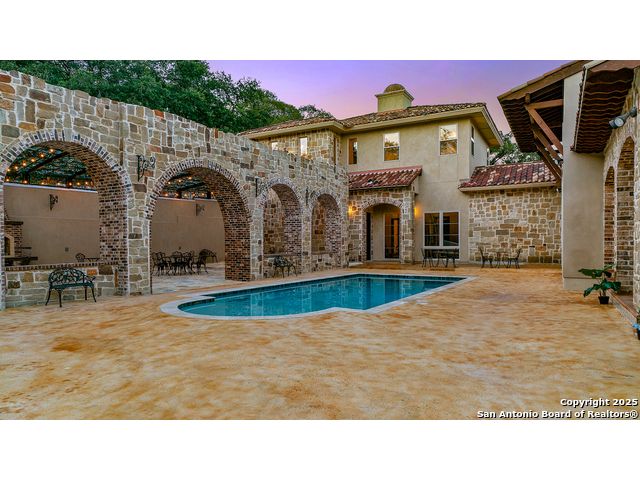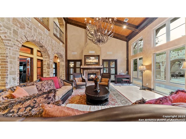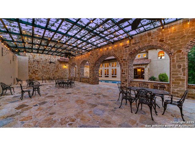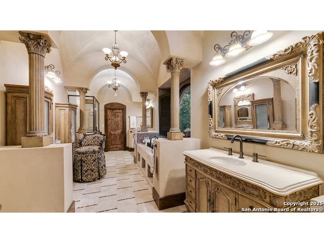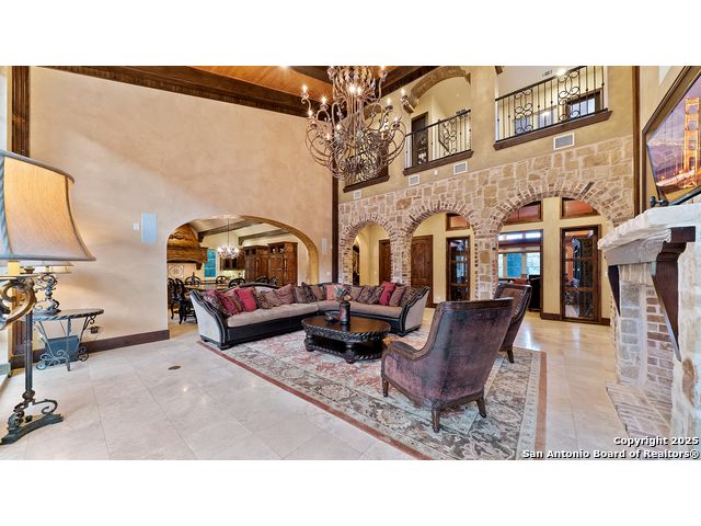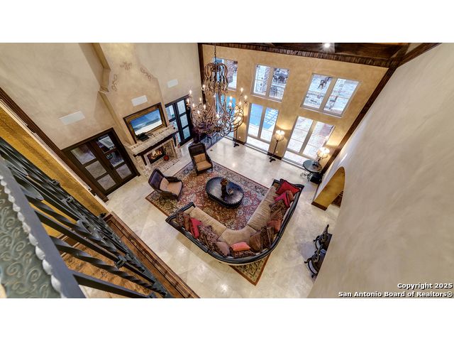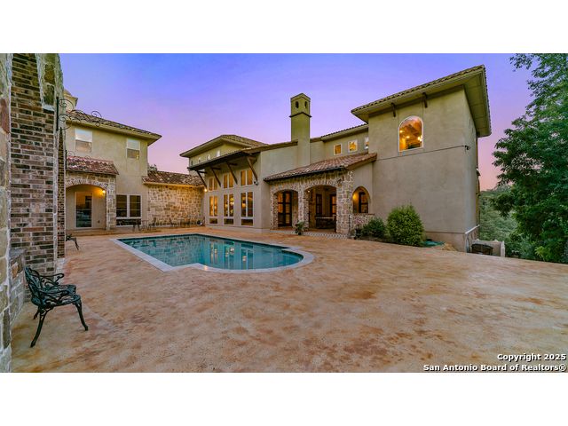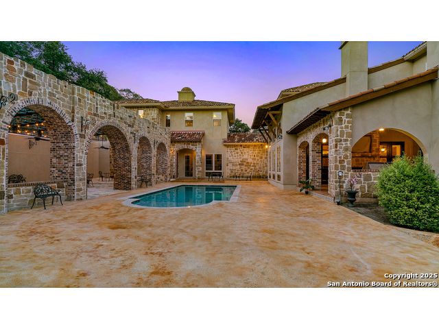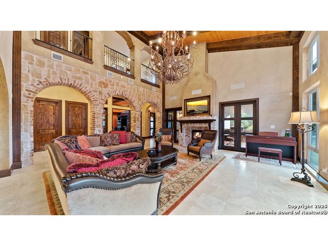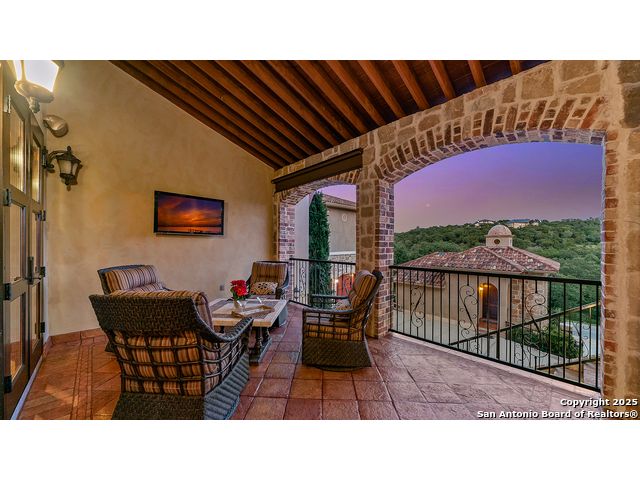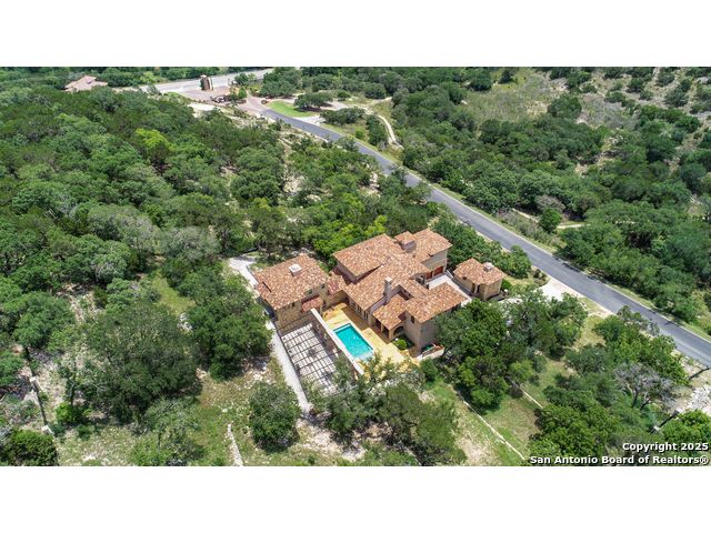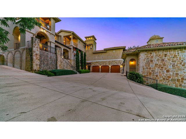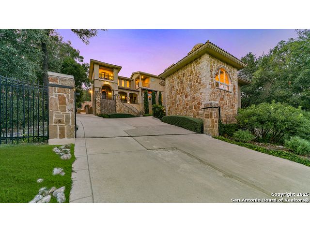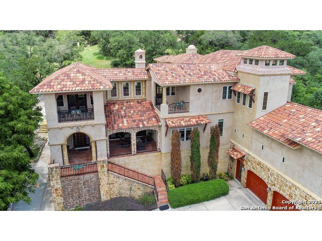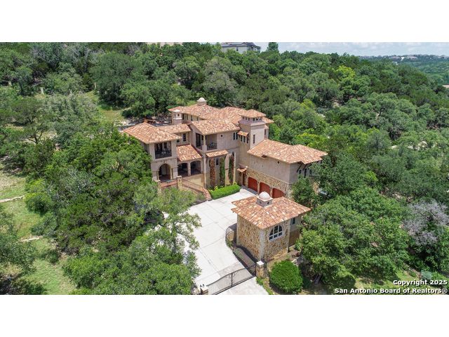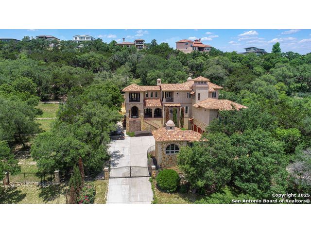 GORGEOUS home located in the sought-after 24-hour gated/guarded TERRA MONT communityin scenic North San Antonio! No detail was overlooked and no expense spared in creating this MEDITERRANEAN BEAUTY! This gem sits high and has incredible ridge line views from all areas of the majestic property! High ceilings, Venetian plastered, and stucco wall finishes give it that "Old World" charm! Imported marble, hand scraped wood floors, dual climate-controlled wine storage are just a few of the first-class touches given to this TIMELESS one of a kind home! The chef's dream kitchen boasts Wolf & SubZero professional-grade appliances with custom mill work trim and range hood as well as a massive single piece granite-topped breakfast island! The Master Retreat has beautiful views, a spa-like bath & enormous walk-in closet! Impressive media room provides you with a theatre-like experience! The Courtyard features a wedding pavilion and custom pool provide for an entertainer's dream! World class gym with an endless pool and infrared sauna! Elevator runs from garage to 2nd floor! Detached guest house "Casita" has bedroom and full bath! Storm shelter! Located only minutes from La Cantera, Six Flags and all the wonderful things SA has to offer! Neighborhood amenities include resort style pool & cabana, tennis courts, sports court and 24hr guarded security! Some custom-built furniture included with the sale of this amazing property! Generator installed in 2020, ensures you won't be left out in the dark or cold! WELCOME TO YOUR DREAM HOME!