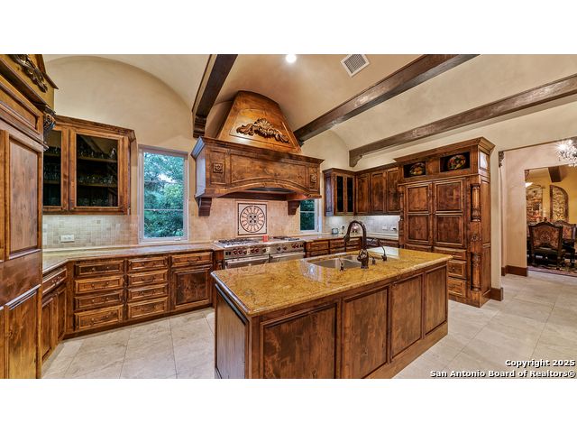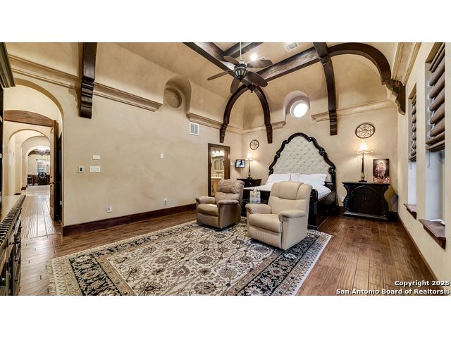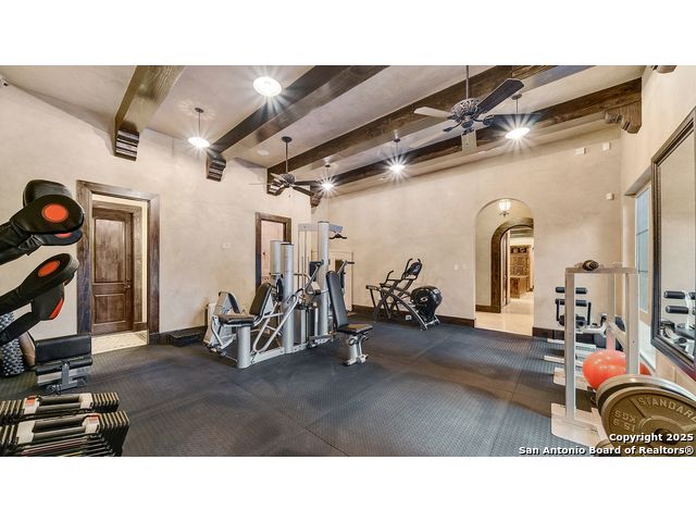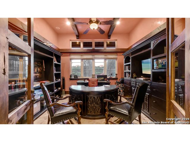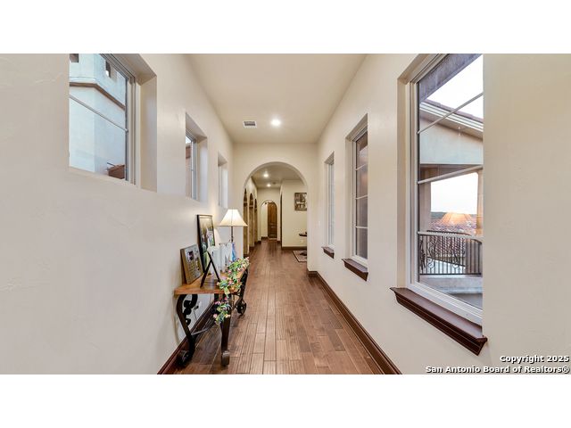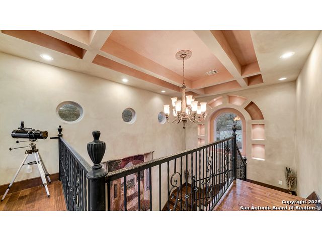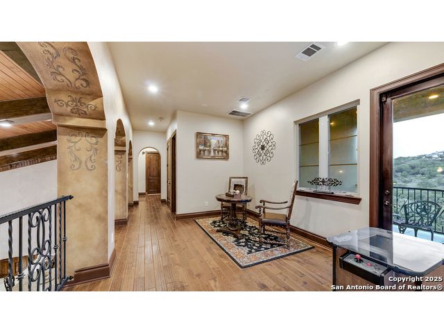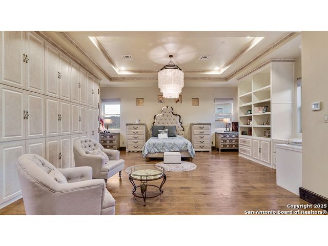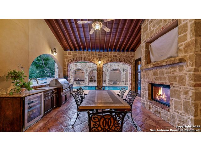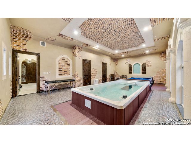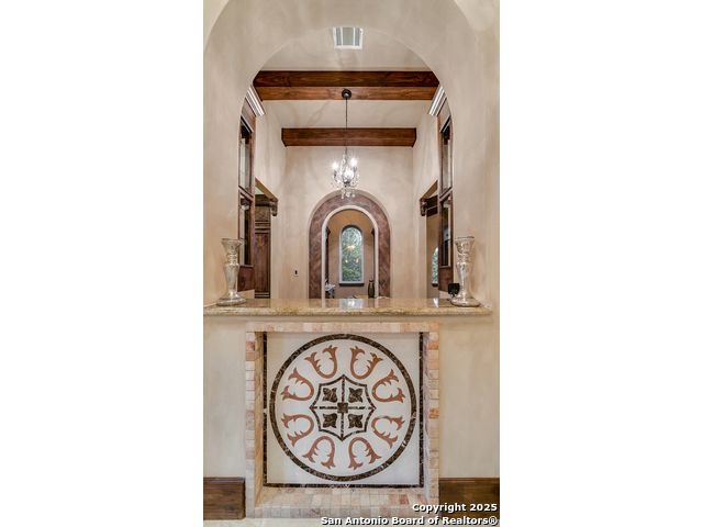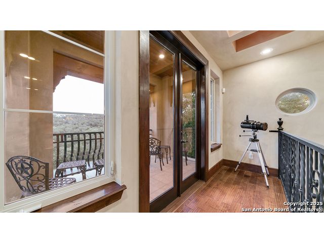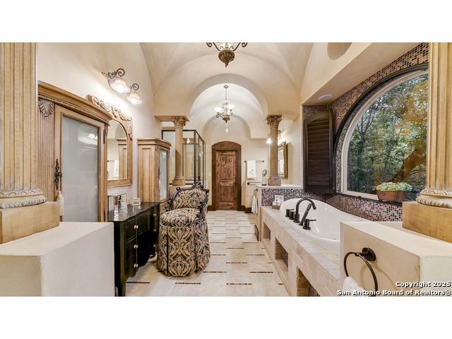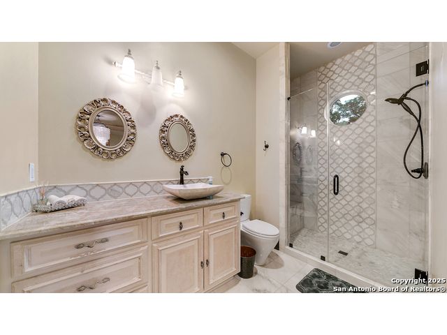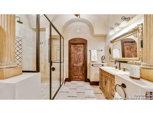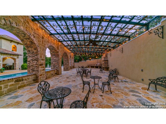 GORGEOUS home located in the sought-after 24-hour gated/guarded TERRA MONT communityin scenic North San Antonio! No detail was overlooked and no expense spared in creating this MEDITERRANEAN BEAUTY! This gem sits high and has incredible ridge line views from all areas of the majestic property! High ceilings, Venetian plastered, and stucco wall finishes give it that "Old World" charm! Imported marble, hand scraped wood floors, dual climate-controlled wine storage are just a few of the first-class touches given to this TIMELESS one of a kind home! The chef's dream kitchen boasts Wolf & SubZero professional-grade appliances with custom mill work trim and range hood as well as a massive single piece granite-topped breakfast island! The Master Retreat has beautiful views, a spa-like bath & enormous walk-in closet! Impressive media room provides you with a theatre-like experience! The Courtyard features a wedding pavilion and custom pool provide for an entertainer's dream! World class gym with an endless pool and infrared sauna! Elevator runs from garage to 2nd floor! Detached guest house "Casita" has bedroom and full bath! Storm shelter! Located only minutes from La Cantera, Six Flags and all the wonderful things SA has to offer! Neighborhood amenities include resort style pool & cabana, tennis courts, sports court and 24hr guarded security! Some custom-built furniture included with the sale of this amazing property! Generator installed in 2020, ensures you won't be left out in the dark or cold! WELCOME TO YOUR DREAM HOME!