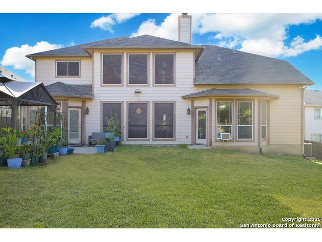 Welcome to Legend Hills, where quiet streets and a strong sense of community set the tone. This spacious two-story home sits on a generous yard shaded by mature trees, creating a private retreat for evenings outdoors or weekend gatherings. Inside, the thoughtful layout shines with dual master suites and multiple living areas, giving everyone space to spread out or come together with ease. The flow from kitchen to dining to living makes hosting simple, while upstairs bedrooms and game room offer flexibility for family, guests, or home office needs. With access to neighborhood amenities-clubhouse, pool, and tennis-and minutes from The Rim and La Cantera, this home combines comfort, convenience, and community in one inviting package.