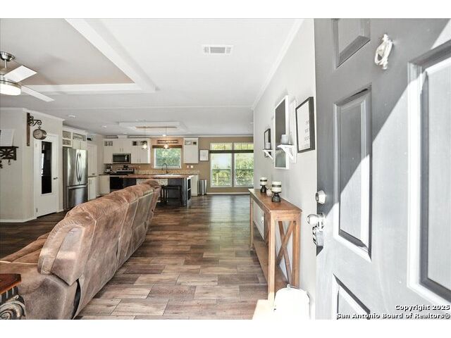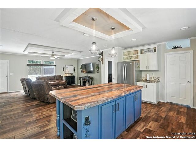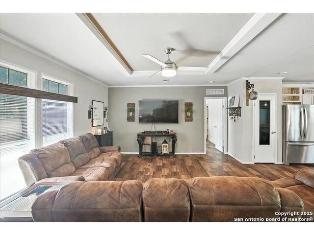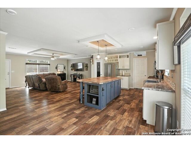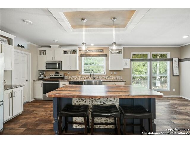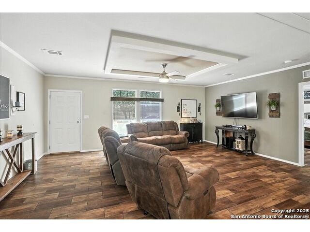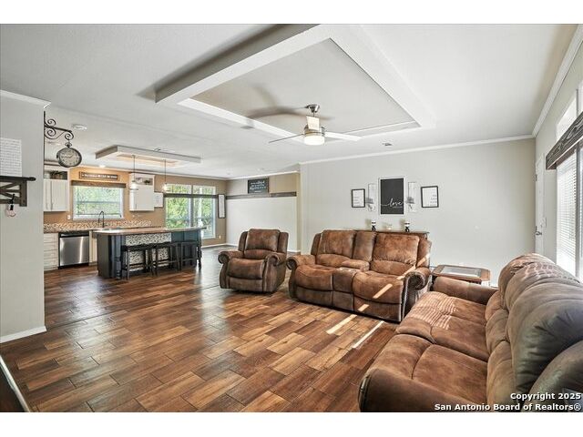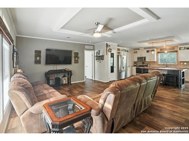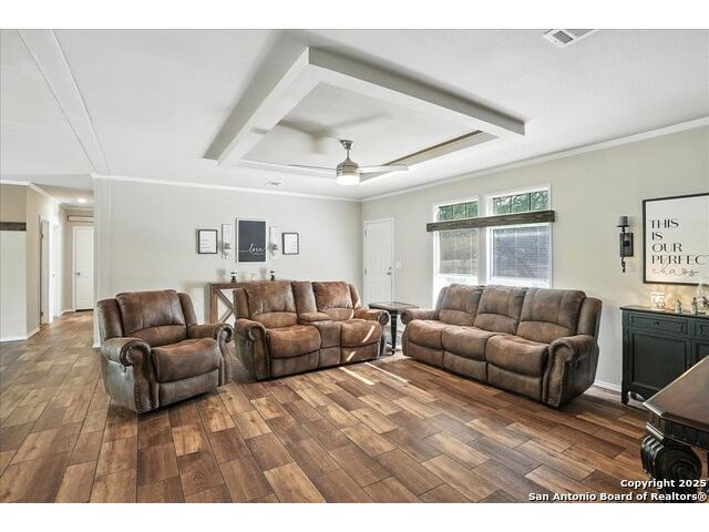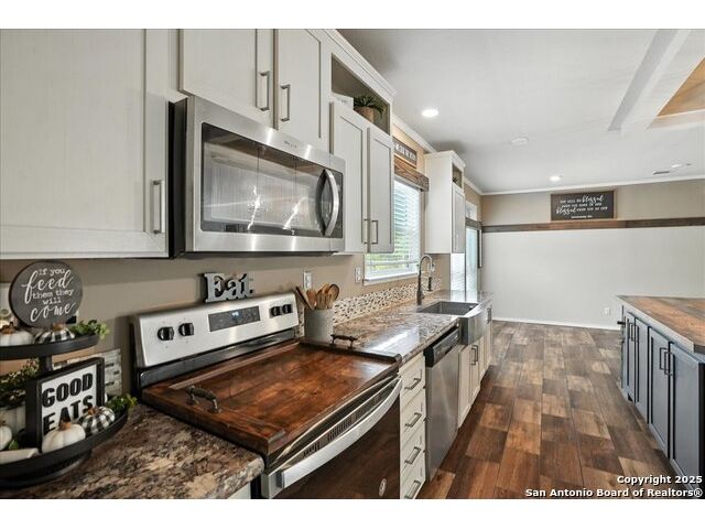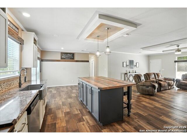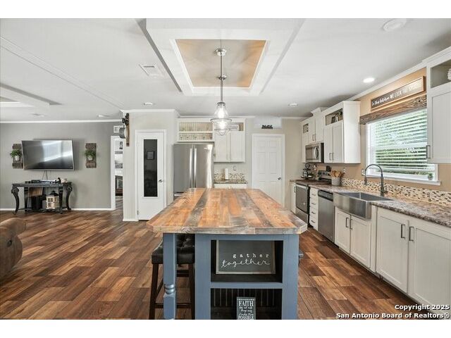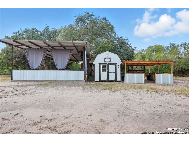 Versatile Property - Residential or Commercial Use!! Formerly The Twisted Oaks Bar & Grill, this unique property offers endless potential on 2.34 acres just south of town. Located within the city limits, the property enjoys full city utilities while still providing plenty of space and flexibility. Whether you're seeking a spacious residence, an income-producing opportunity, or a blend of both, the location and layout deliver exceptional versatility. Residence Features (2021 Manufactured Home -1,860 SQFT) *4 Bedrooms / 2 Full Bathrooms *Open concept living with crown molding *Large kitchen island with butcher block countertop *Stainless steel appliances (convey with property) *Built-in microwave & tile backsplash *Neutral interior paint throughout *Decorative ceilings with ceiling fans in most rooms *Dedicated laundry room with exterior access *Spacious bedrooms with walk-in closets *Huge primary suite with: -Walk-in tiled shower -Double vanity -Oversized walk-in closet Exterior & Property Improvements (2.34 Acres - Inside City Limits with Utilities) *Prime corner location with dual entry from Hwy 281 & Cemetery Rd. *City water and utilities (no need for well/septic) *Fully fenced for privacy and security *3 Outbuildings: -30' x 60' open-sided metal building (formerly bar space) with 2 half baths - perfect for entertainment, events, or conversion -Storage shed with full kitchen & AC unit -Grill, 2 fryers, refrigerator, vent hood, prep sink included -Open-sided metal building with 3-compartment firepit *Ample parking & accessibility for commercial or residential needs With its city utilities, prime Hwy 281 frontage, and versatile layout, this property can easily serve as a comfortable homestead, a business location, or both. Few opportunities combine this much space, functionality, and location inside George West city limits-making this one a must-see!