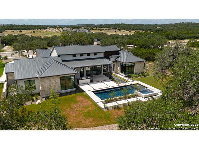 Open House 11/29 10-3pm & 11/30 12-4pm! Lifestyle by Stadler is proud to present a stunning new luxury home nestled in the exclusive George's Ranch community of Boerne. Sprawling on 1+/- acres, this 3,926 sq. ft. custom-designed masterpiece is the result of an inspired collaboration with renowned architect Jim Terrian and the visionary design team at Twin Sisters Interiors. Thoughtfully laid out with 3 spacious bedrooms, 4.5 baths, a private study or 4th bedroom, and a versatile flex space, the home is designed to elevate everyday living while offering exceptional comfort and functionality. The endless views this property provides shows the award for best elevation was well deserved. Seamless indoor-outdoor transitions invite effortless entertaining, highlighted by a striking pass-through fireplace, custom bar, and a resort-style pool that captures the essence of relaxed Hill Country luxury. The award winning primary suite features a spa-like bath with a floating tub and tranquil views offering a true sanctuary. Rooted in German heritage and layered with timeless design elements, this home radiates both sophistication and warmth-creating a welcoming atmosphere that feels instantly and unmistakably like home. This 2025 GSABA Parade of Homes showstopper is one you will fall in love with!