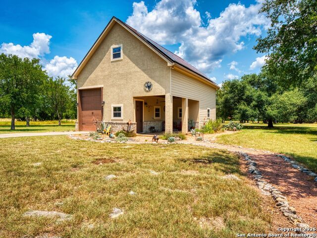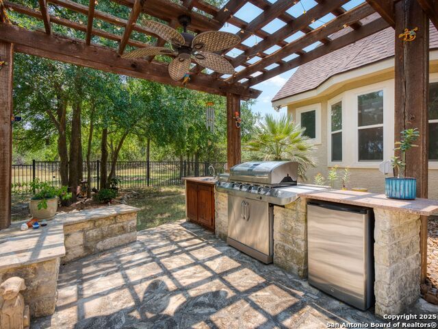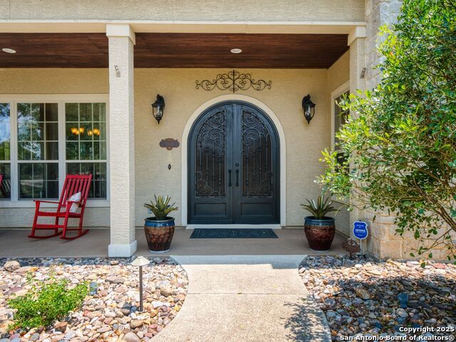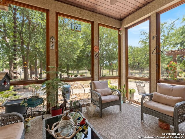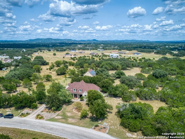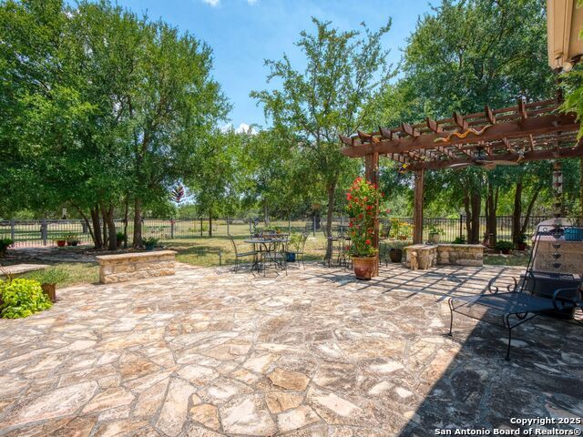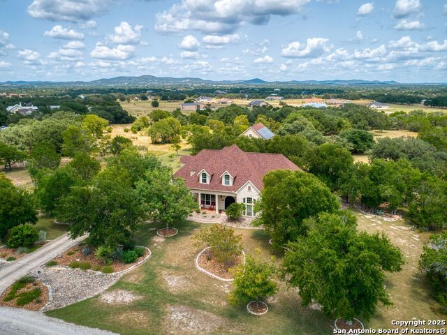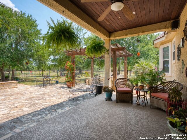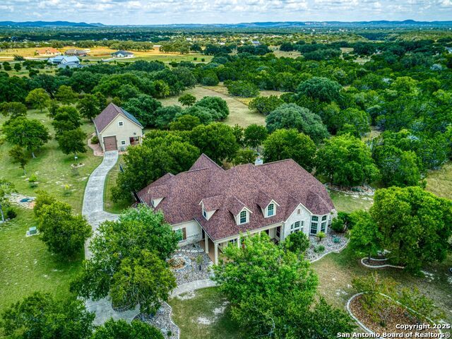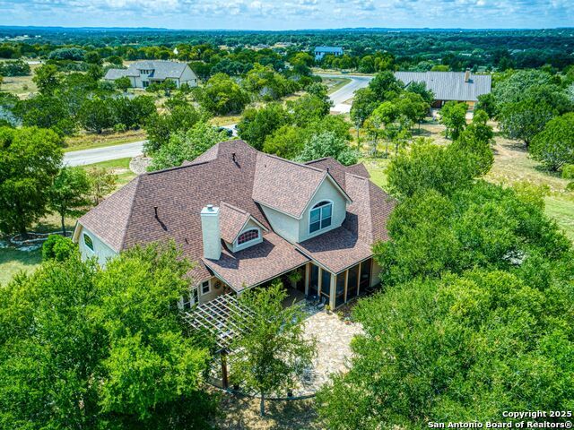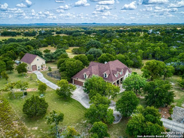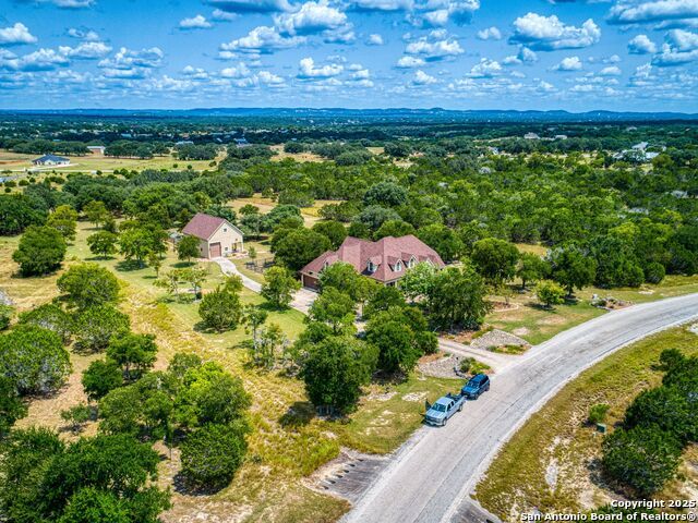 Set on a scenic homesite with sweeping sunset views, this spectacular two-story home with rustic warmth and gorgeous upgrades is tucked in Bridlegate gated subdivision in Bandera, Texas- "The Cowboy Capital of the World." The property includes a huge 30' x 40' RV Barn, spectacular outdoor lighting, water catchment tank, solar screens, covered patio, pergola, green house/garden and awesome outdoor kitchen! Inside you will find an entertainer's kitchen with gas cooktop, double ovens, pot filler, tile backsplash, roomy island, built-in wine rack, and custom cabinets. Stereo system inside and out! Relax and enjoy your morning coffee in a sun room designed for easy living. The primary bedroom is private and downstairs, with two additional bedrooms upstairs plus a game room/flex room. Neighborhood amenities include Medina River Park, parks/playgrounds, pools, tennis and club houses. Photos are included above. Steeped in heart, heritage and natural beauty, this Bandera retreat is more than a place to live- It's a place to belong.