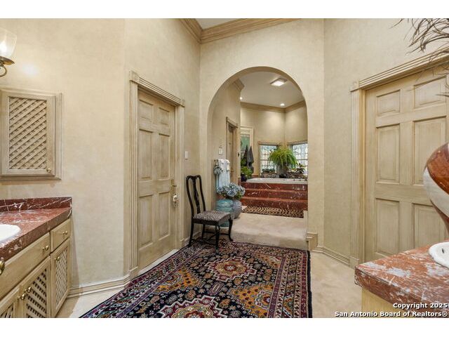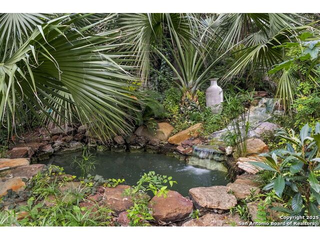 Welcome to a rare architectural gem nestled in the heart of the prestigious Marymont Subdivision. This distinguished estate blends timeless elegance with natural beauty, creating a tranquil retreat unlike any other. Set on an expansive 0.67-acre lot, this property offers unmatched privacy and a serene outdoor escape featuring lush landscaping, a sparkling pool, and a breathtaking four-tiered waterfall-your very own secluded oasis. Inside, the home is a showcase of sophisticated craftsmanship and old-world charm. From rich Italian marble flooring to handcrafted woodwork and vibrant Talavera tile throughout, every detail has been meticulously curated and maintained. Elegant Cantera columns frame the interiors, adding a touch of grandeur and warmth that elevates the living experience. The seamless indoor-outdoor connection is a standout feature. Whether you're enjoying a morning coffee from the kitchen, hosting from the den, or relaxing in the spacious Primary Suite, multiple access points to the balcony invite you to soak in the serene views and soft sounds of your private paradise. This fluid transition between interior and exterior living spaces enhances the home's charm and livability. Don't miss the opportunity to own this irreplaceable sanctuary that effortlessly blends refined luxury with natural beauty-where architecture and nature coexist in perfect harmony.