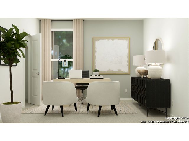 La Siesta - This new home features a modern and low-maintenance design contained to a single level. Off the foyer are two secondary bedrooms and a convenient study, providing a secluded place to focus on important tasks throughout the week. The kitchen, dining room and family room share an open-concept floorplan, with a nearby covered patio ready for outdoor entertainment and leisure. The owner's suite is nestled into a private corner at the back of the home. Prices and features may vary and are subject to change. Photos are for illustrative purposes only.
