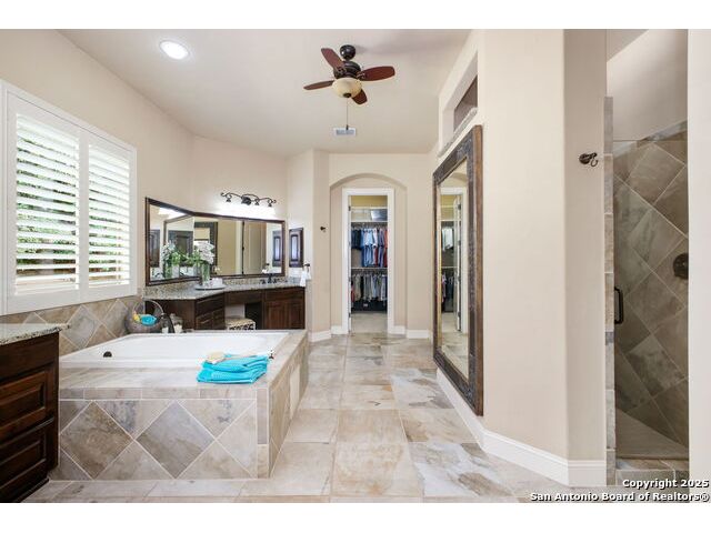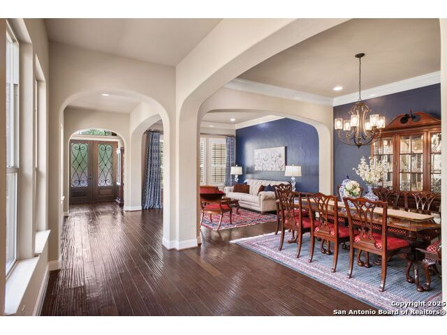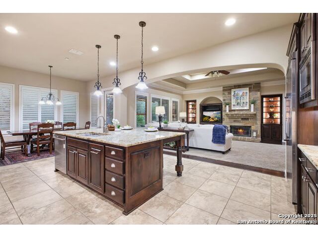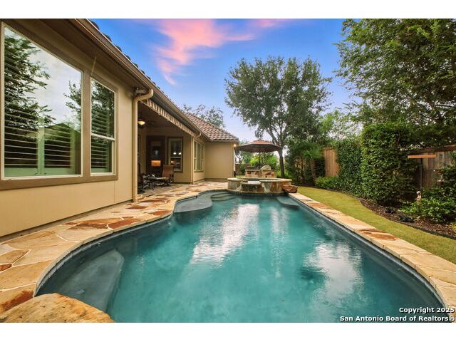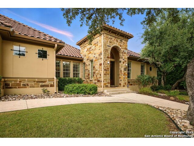 Situated on a majestic .35-acre homesite in the exclusive "Willow Wood @ Shavano Park" community, this elegantly designed residence offers a refined balance of luxury and comfort. Drive up to the lush landscape with stunning rock/stucco exterior & Tile roof boasts elegant curb appeal. The thoughtful flowing layout showcases superior craftsmanship throughout, with wood/tile floors throughout main traffic areas, plantation shutters, open floorplan, windows galore allowing natural light to flow through and detailed custom architectural elements at every turn. The chef's kitchen features stainless steel Viking appliances, ample built-in cabinetry, gas stove/range perfect for both everyday living and entertaining. The primary suite is split from the other bedrooms & offers a serene retreat with a spa-inspired bathroom and a spacious walk-in closet. The 5th bedroom can be used as an office space or mother in law suite. Walk out to an entertainers dream back yard with a covered patio, stunning pool/spa for those warm days & built in kitchen with gas grill. You will never want to leave home! This home is a very rare find in a rare community and won't last long so come and see it today!