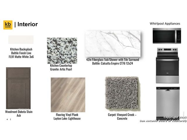 Enjoy modern comfort in this beautifully finished home featuring 9-ft. first floor ceilings and stylish design throughout. The kitchen boasts Whirlpool stainless steel appliances, Woodmont Dakota Shaker panel 42-in. upper cabinets, a Daltile tile backsplash, and granite countertops in Arctic Pearl. The primary bath offers upgraded cabinets and a 42-in. garden tub/shower with a Daltile tile surround for a relaxing retreat. Decorative touches include a Carrara-style entry door, Kwikset Polo interior door hardware, and vinyl plank flooring in the bathrooms, kitchen, and living room. A wireless security system, fully sodded yard, and automatic sprinkler system complete this move-in ready home.