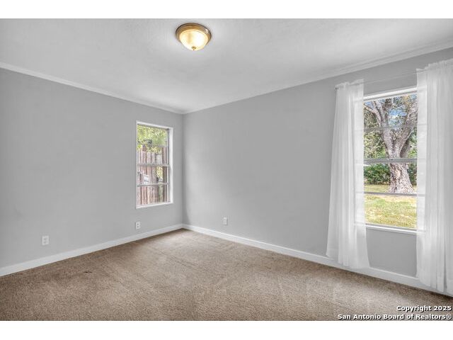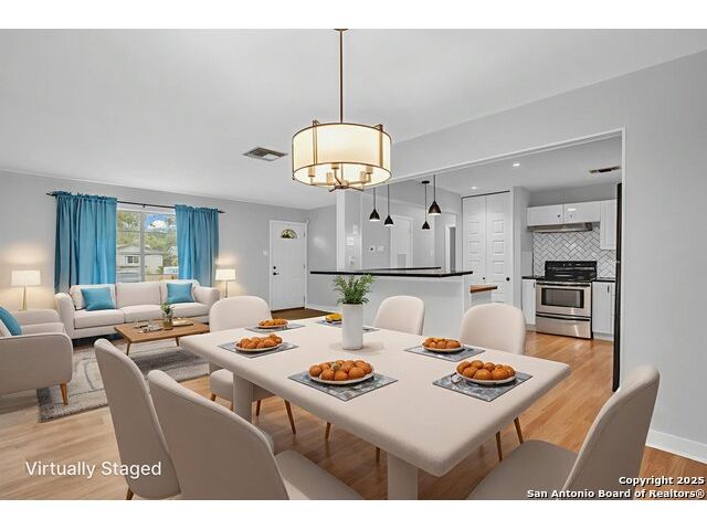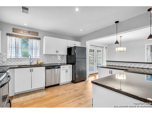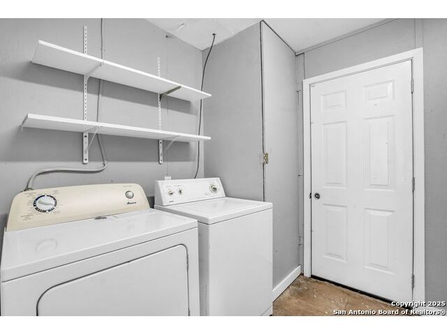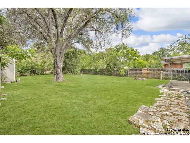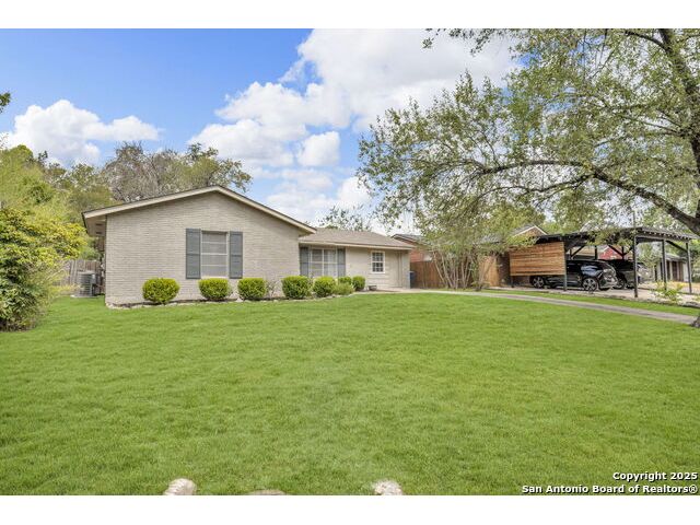 Welcome to 8211 Berrycreek Dr, San Antonio, TX 78218! Nestled in a quiet, private neighborhood, this charming single-story home offers the perfect blend of comfort and convenience. As you arrive, you'll be greeted by beautiful rose bushes and hearty landscaping, setting a warm and inviting tone. Step inside to a light-filled, open living area-ideal for relaxing or entertaining. The home features two full baths and a spacious, converted 15x10 garage, perfect for a home office, gym, or extra living space. Enjoy year-round comfort with a recently replaced high-efficiency SEER A/C system. The kitchen comes complete with a washer, dryer, and refrigerator, making move-in a breeze. A separate laundry room and a handy storage building provide all the space you need for organization. The covered patio overlooks an expansive backyard, perfect for gatherings, gardening, or simply unwinding in your private outdoor oasis. A security system offers peace of mind. Located near the vibrant community of East Terrell Hills, you'll enjoy easy access to local favorites like H-E-B, Walmart Supercenter, and the popular Northeast Senior Center. Dining options abound with Taqueria El Rodeo De Jalisco and Bill Miller Bar-B-Q just minutes away. Don't miss your chance to own this delightful home in a peaceful San Antonio neighborhood-schedule your tour today!