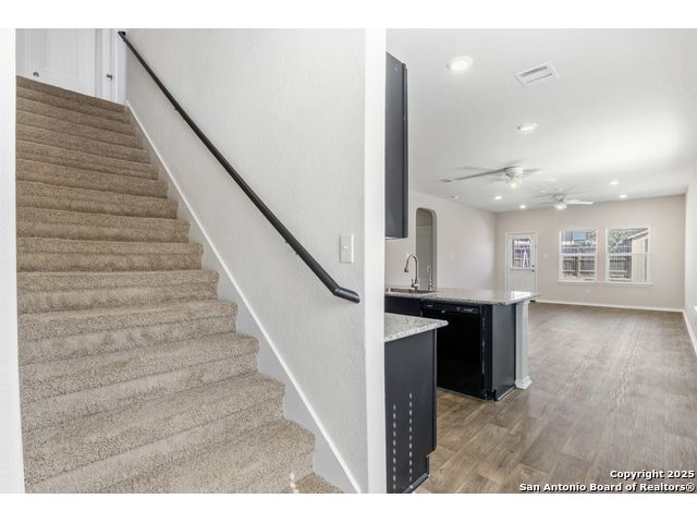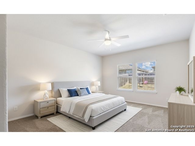 **ASSUMABLE VA LOAN- 2.625 ** Step into this stunning 2-story home featuring a downstairs master retreat with an oversized walk-in closet and plenty of natural light! The open kitchen boasts granite counters and overlooks the spacious living area perfect for entertaining. Upstairs, you'll find two bedrooms and a versatile loft ideal for a home office, or extra entertainment space. Enjoy the outdoor extended patio space, storage shed, and plenty of backyard space for kids or pets. Smart home features, a water softener, a mini split in the garage, and the refrigerator are all included! Located in a fast-growing area with easy access to Loop 1604 and Hwy 90. Seller offering $8,000 toward closing costs!
