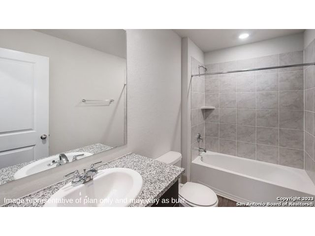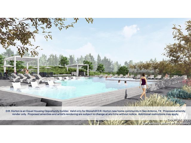 Step into The Brooke floor plan at Stonehill in San Antonio, TX, a one-story home featuring 3 bedrooms and two bathrooms. The Brooke also offers 2 classic front exteriors, a 2-car garage and 1396 square feet of comfortable living. The Brooke features an open concept layout that blends seamlessly to create the perfect everyday space. The gourmet kitchen separates the living area and dining room and includes quartz counter tops, stainless steel appliances, and shaker-style cabinets. The main bedroom features an attractive ensuite bathroom complete with a quartz vanity counter top, shaker style cabinets, separate water closet and a large walk-in shower. You'll have all the space you need to get ready in the morning with a large walk-in closet. You'll find quality carpet and closets in all of your secondary bedrooms, which can also be used as offices, play rooms or other bonus rooms. Head out the back door located off the dining room to find the rear covered patio (per plan) and full yard landscaping & irrigation. Additional features include sheet vinyl flooring in entry, living room, and all wet areas, quartz counter tops in all bathrooms and our HOME IS CONNECTED base package. Using one central hub that talks to all the devices in your home, you can control the lights, thermostat and locks, all from your cellular device.