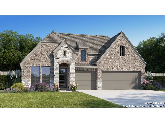 Welcoming entry framed by home office with French doors. Generous family room with a wood mantel fireplace extends to kitchen and dining area. Island kitchen with built-in seating space, 5-burner gas cooktop and corner walk-in pantry. Primary suite offers a large wall of windows. Primary bathroom hosts a double door entry, dual vanities, freestanding tub, separate enclosed shower, two walk-in closets and a private entry to the utility room. Guest suite with full bathroom and walk-in closet. Secondary bedrooms feature walk-in closets. Extended covered backyard patio. Mud room off the three-car garage.