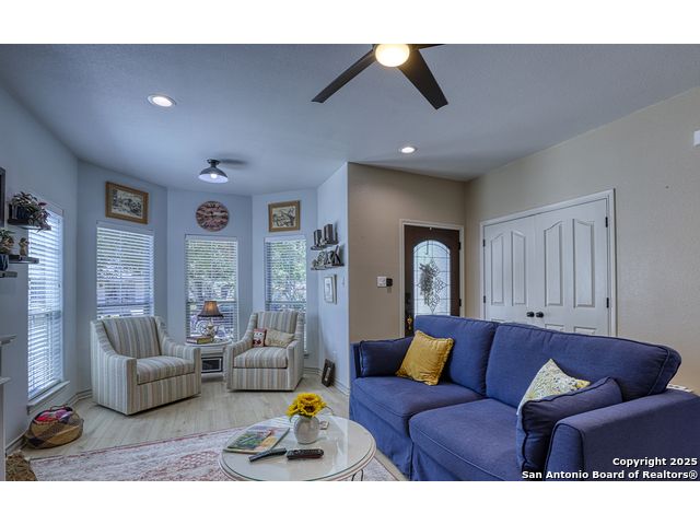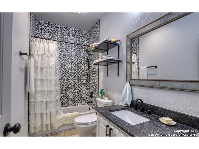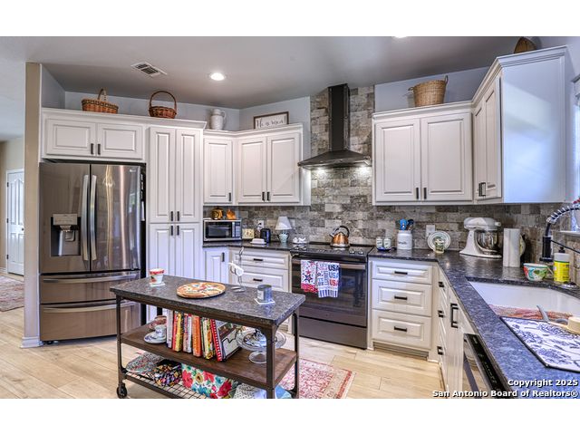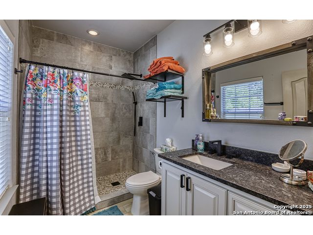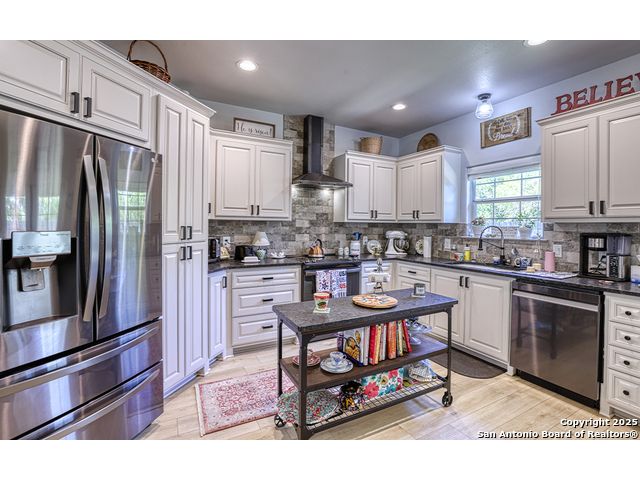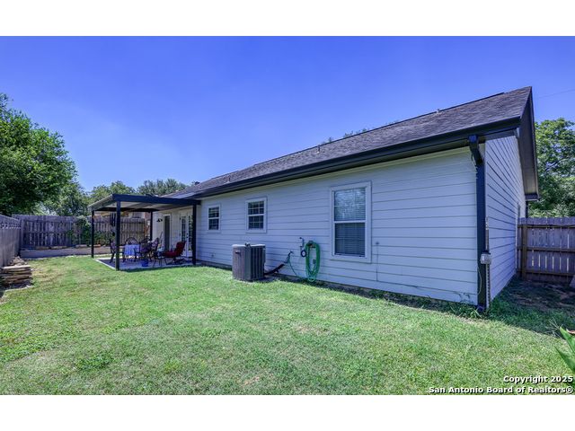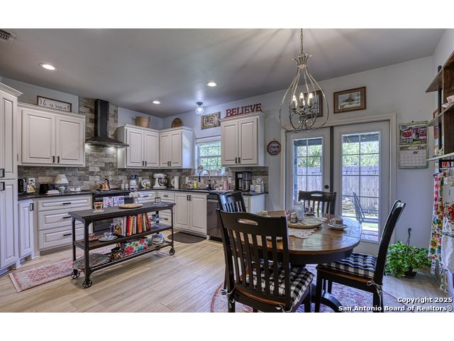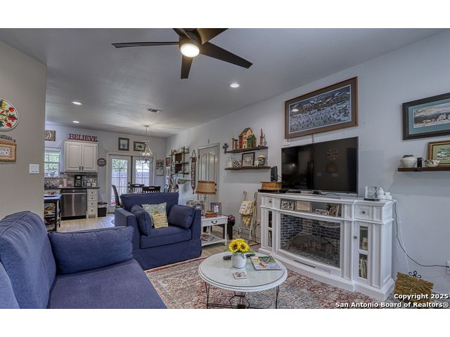 This 3 bedroom, 2 bath home has been renovated and sits in the heart of Historic Downtown Floresville. The home features an open floorplan, with custom country-white cabinets, black leathered granite counters, and GE Stainless appliances. Enjoy your morning coffee or unwind in the evening under the awning in the fully fenced backyard. The open living room has recessed lighting and a large Bay Window overlooking the well-manicured front lawn. The Master Suite has beautiful upgrades such as a large walk-in closet and a large walk-in shower with floor-to-ceiling tile. Downtown Floresville is just a few blocks away, making it easy to enjoy the Peanut Festival and downtown markets. The home sits beside the recently renovated walking trail. This updated home with custom craftsmanship and modern flair is a must-see!