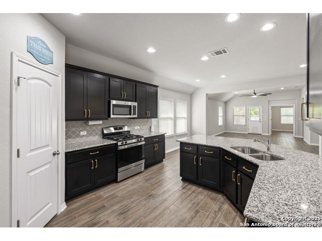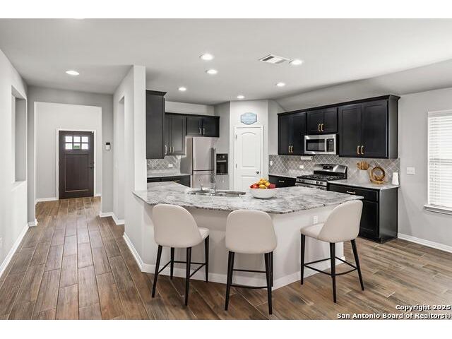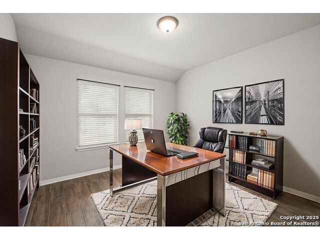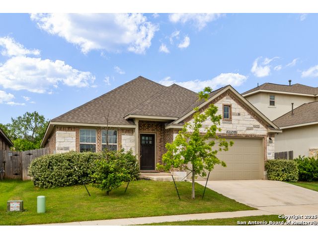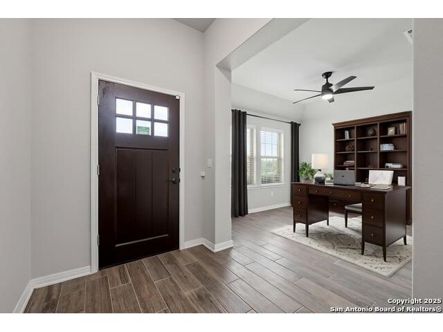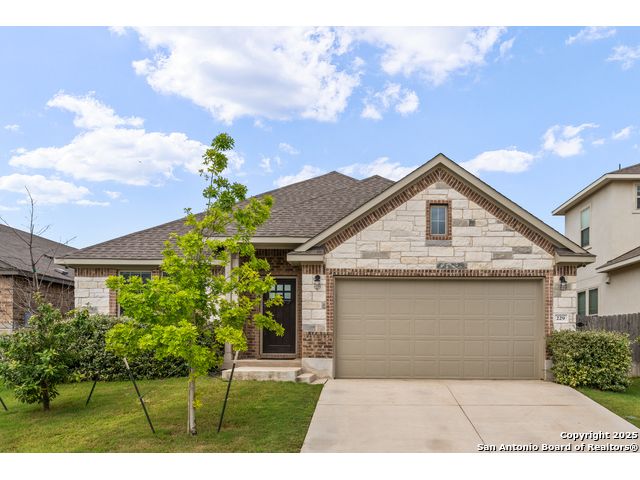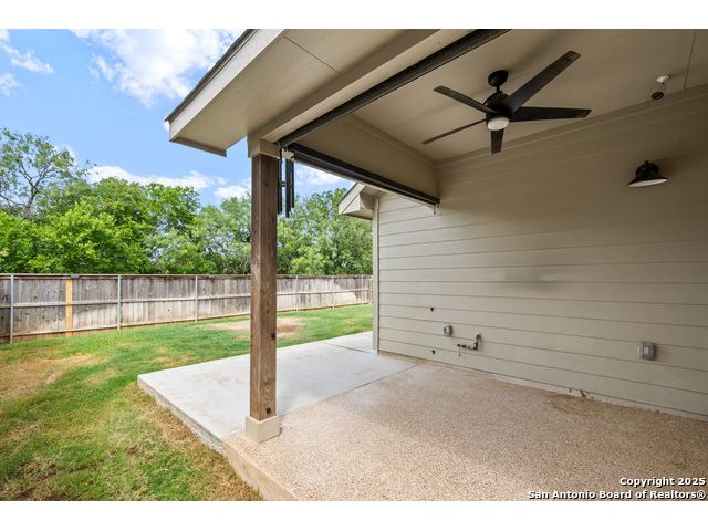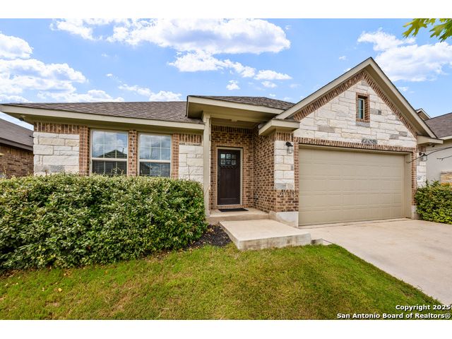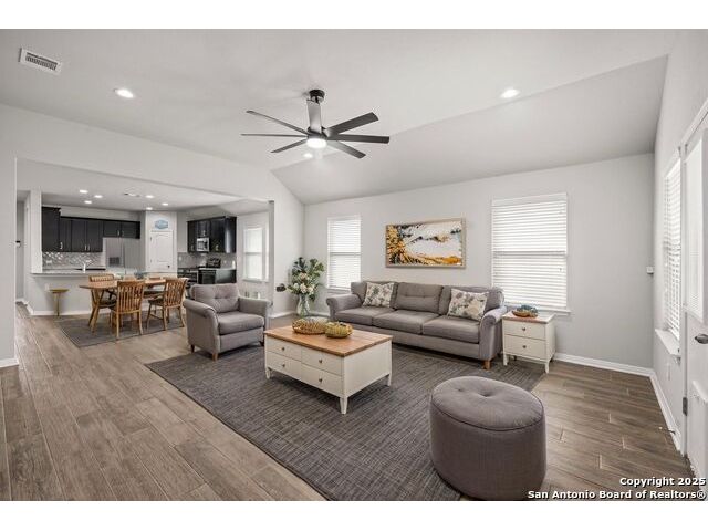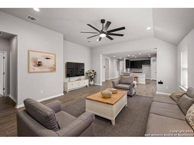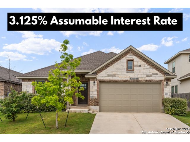 This home as an assumable 3.125% interest rate available! **Blanco Vista Beauty with a Home Office, Flex Space & No Rear Neighbors!** If you've been dreaming of a spacious one-story home that checks all the boxes, this is the one. With a dedicated home office and a flex space, there's room for everything-whether you work from home, need a playroom, or want a creative studio or gym. Just 4 years old and full of modern charm, this 3-bedroom, 2-bath home in Blanco Vista offers 2,204 square feet of thoughtfully designed living space. From the moment you walk in, you'll notice the beautiful wood-look tile floors and the open, airy feel throughout the main living areas. The kitchen is a total standout-spacious, stylish, and perfect for cooking up your favorite meals or entertaining guests. It opens right into the living and dining spaces, so everything feels connected and easy. Need a quiet place to work or focus? You've got it. There's a private office up front *plus* an additional flex room that you can use however you like. The primary bedroom is oversized with space for a cozy sitting area, and the en-suite bathroom offers a peaceful retreat after a long day. Step outside to your extended covered patio, where you can enjoy outdoor meals or just relax with your morning coffee-no rear neighbors, just peace, privacy, and a view of mature trees. And let's not forget the perks of living in Blanco Vista. This master-planned community has it all-an on-site elementary school, two swimming pools (one junior Olympic, one just for the kids), playgrounds, lush parks, and miles of hike and bike trails. You're even close to the Blanco River, perfect for weekend adventures. This home is move-in ready and waiting for you to make it your own. Come see it in person-you're going to love it here!