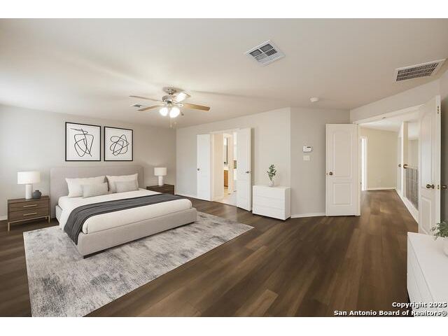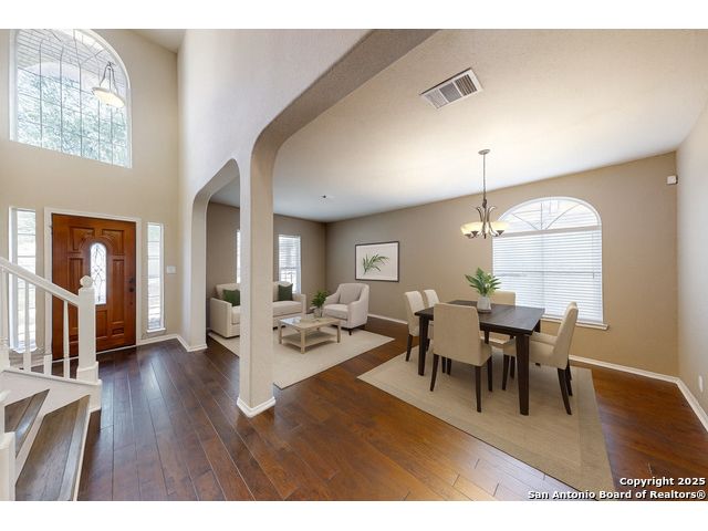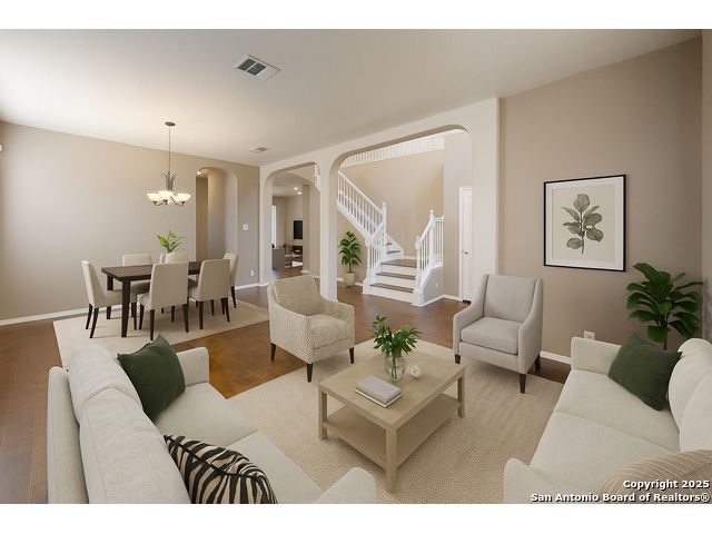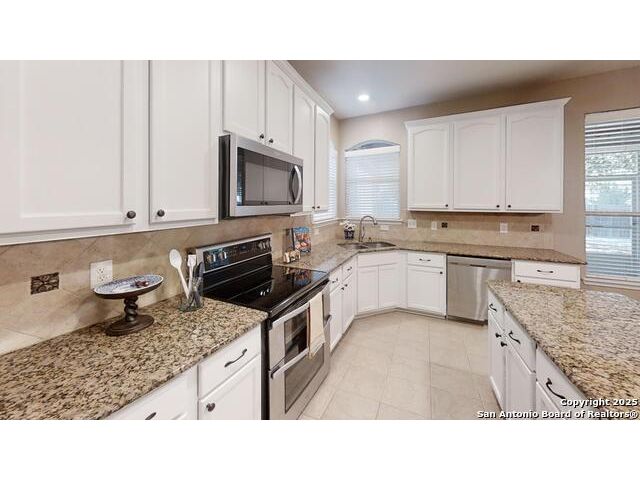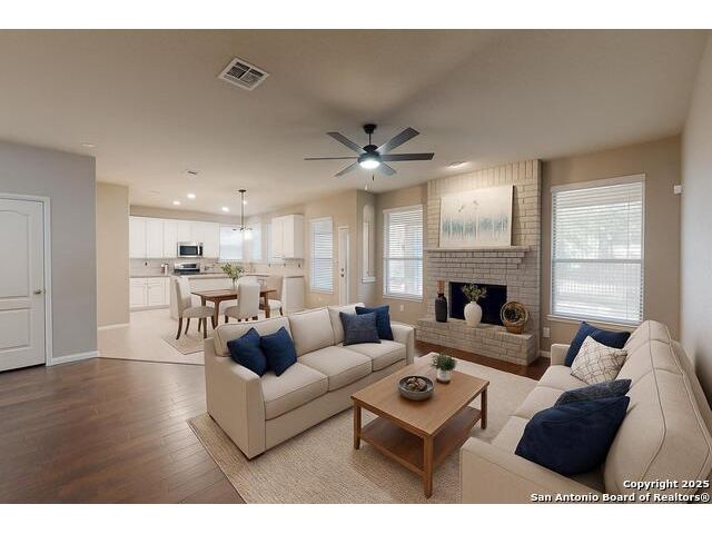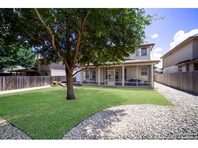 We have spruced up and painted cabinets a lovely white and it feels good! This sought-after five-bedroom, three-bath home in Schertz offers over 3,200 square feet of living space with an open floor plan and three separate living areas, providing room for everyone. The kitchen is designed for everyday living and entertaining with an enormous walk-in pantry and a seamless flow into the dining and family spaces. Enjoy wood and tile and luxury vinyl floors run throughout the home-no carpet anywhere-making it as practical as it is beautiful. Upstairs and downstairs living spaces give flexibility for work, play, or relaxation, while the backyard features a large screened-in patio perfect for year-round enjoyment. A brand new roof adds peace of mind, and the home is filled with thoughtful upgrades and details that make it move-in ready. Awesome community center for neighbors to meet at the pool and playground! Conveniently located less than 10 miles from Randolph Air Force Base, and just minutes from The Forum Shopping Center, H-E-B, EVO Entertainment, and Santikos, this home combines comfort, style, and convenience in one complete package.