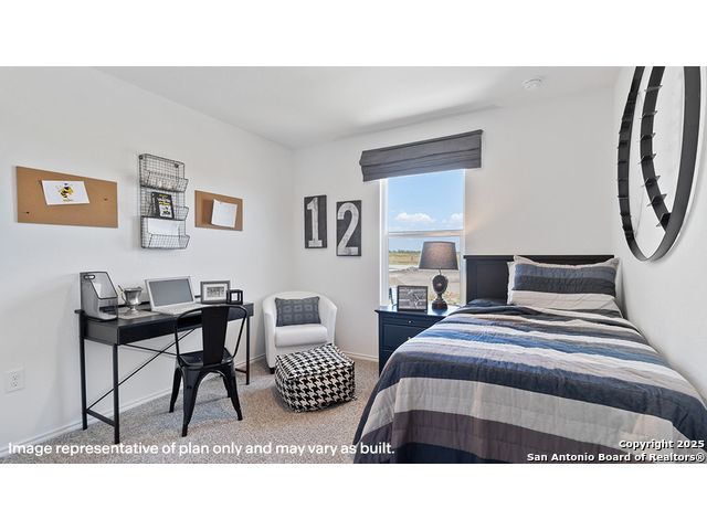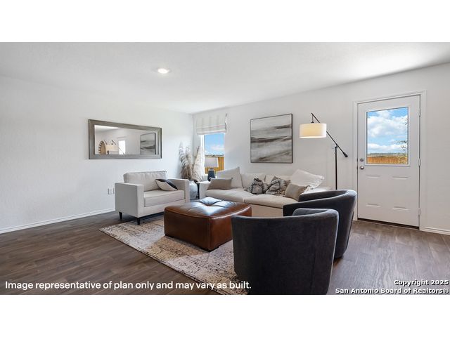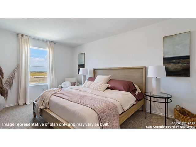 The Franklin plan is one of our two-story homes featured in Sereno Springs in Converse, TX. This new home layout offers 2 classic front exteriors, 5 bedrooms or 4 bedrooms with a loft space, 2.5 baths, 2 car-garage and 1891 square feet of comfortable living. Step inside The Franklin to find an elongated foyer opening to an open concept living room, kitchen, and dining area. The gourmet kitchen faces the living area so you don't miss a thing while cooking and includes quartz counter tops, stainless steel appliances and shaker style cabinetry. The main bedroom is located toward the front of the home on the second story and features an attractive attached bathroom with a walk-in shower, quartz countertops, a grand walk-in closet and plenty of storage space. The second story includes all secondary bedrooms, and two full bathrooms. You'll have carpeted floors in every bedroom and sheet vinyl flooring in your bathrooms and utility room. Additional features include sheet vinyl flooring in entry, living room, and all wet areas, quartz counter tops in all bathrooms and HOME IS CONNECTED base package. Using one central hub that talks to all the devices in your home, you can control the lights, thermostat and locks, all from your cellular device.