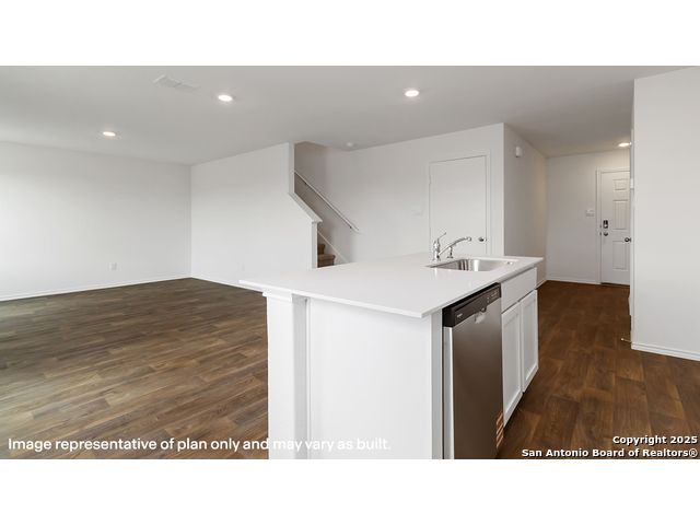 Welcome to The Davis, a two-story home located at Sereno Springs in Converse, TX. This floor plan offers 2 classic exteriors and 2-car garage. Inside this 3 bedroom, 2.5 bathroom home, you'll find 1489 square feet of living space. The entry opens to a gourmet kitchen before flowing into the dining and family room with an open floorplan concept. The kitchen includes quartz counter tops, quality cabinetry, stainless steel appliances, large breakfast island, and pantry. Head up the stairs to find the main bedroom suite, all secondary bedrooms, the laundry room, and a full bath. The Davis layout is perfect if you love entertaining downstairs and relaxing upstairs. The private main bedroom features an attractive ensuite with quality cabinetry. A spacious tiled walk-in shower and large walk-in closet provide all the space and convenience you need. Additional features of The Davis floor plan include sheet vinyl flooring in entry, living room, and all wet areas, quartz counter tops in all bathrooms and HOME IS CONNECTED base package. Using one central hub that talks to all the devices in your home, you can control the lights, thermostat and locks, all from your cellular device.