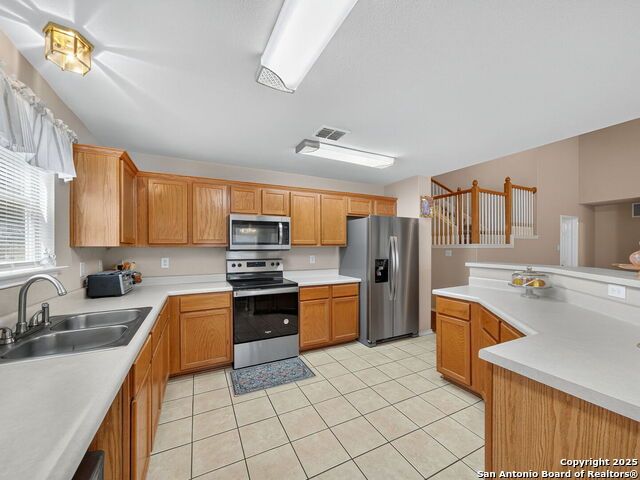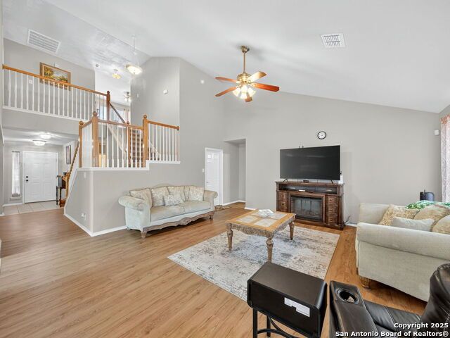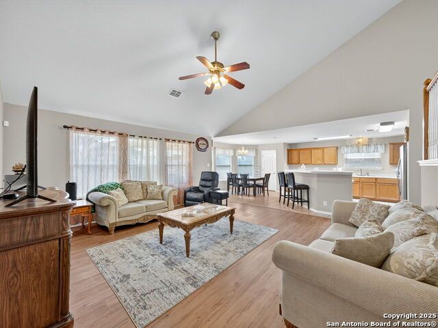 Step into this beautifully cared for 4-bedroom, 3.5-bath home, a place that you will captivate your heart. With soaring ceilings, elegant finishes, and a thoughtful layout with dual primary bedrooms, this home was designed for both meaningful gatherings and everyday moments that make life special. As soon as you enter the home you are greeted by the elegant formal dining room that invites celebrations around the table. With plenty of space in the dining area, you can host delightful evenings with your loved ones. The open kitchen, with abundant cabinetry, a breakfast nook, and a breakfast bar overlooking the living room, keeps the heart of the home connected. On the main floor, you'll also find a private primary bedroom with its own full bath, perfect for creating a cozy guest retreat or giving multi-generational living its own peaceful corner. Upstairs, the spacious secondary primary suite is tucked away for privacy and relaxation, complete with dual vanities, a soaking tub, and a walk-in shower that feels like a personal spa. Two additional bedrooms, separated by a versatile game room, give household members or guests their own comfortable space. Charming touches like the spindled staircase and a welcoming back patio add warmth and character, while the spacious backyard offers endless possibilities for play, pets, and outdoor fun. Conveniently located near H-E-B, Walmart, and Sam's Club, this home offers not just beauty, but also the ease of having everything you need nearby. Just minutes away is the Emory Oak Trailhead, a favorite spot for walking, hiking, and birdwatching: nature enthusiasts will feel right at home in this location! Come and explore this beautiful home today!
