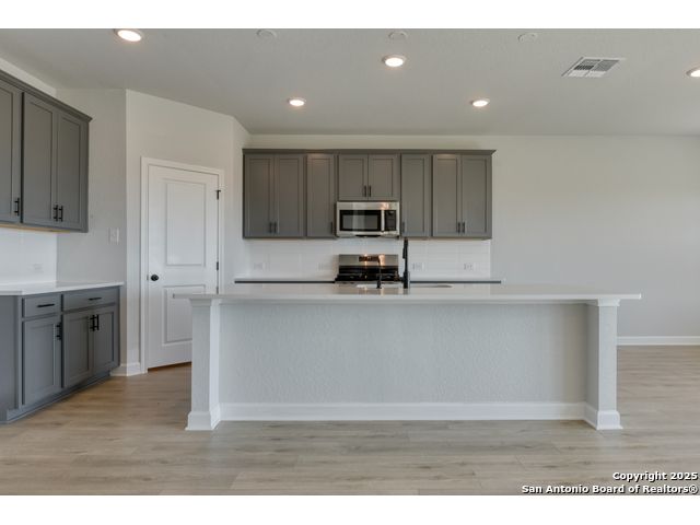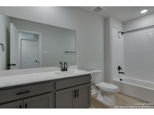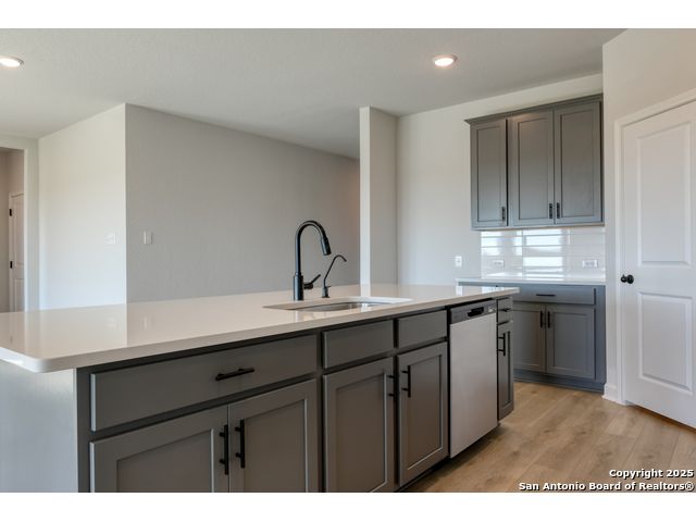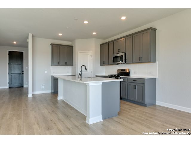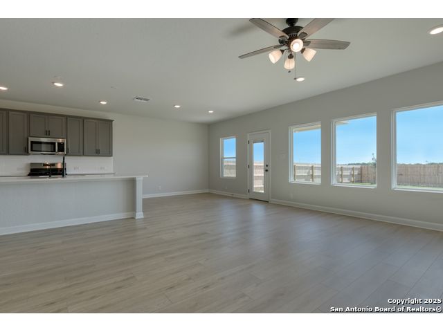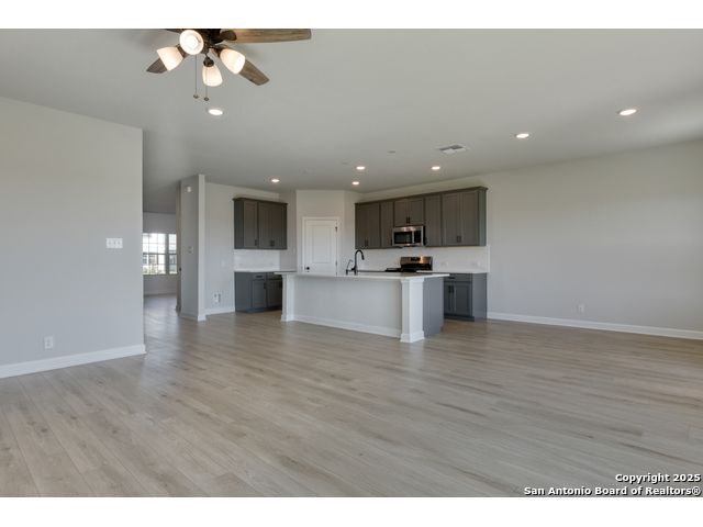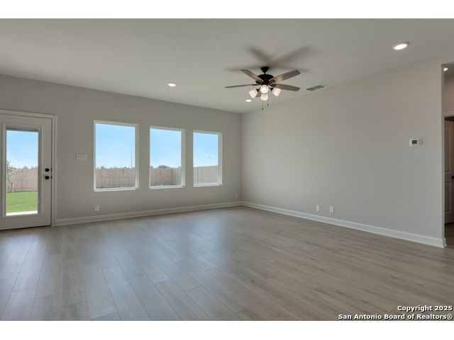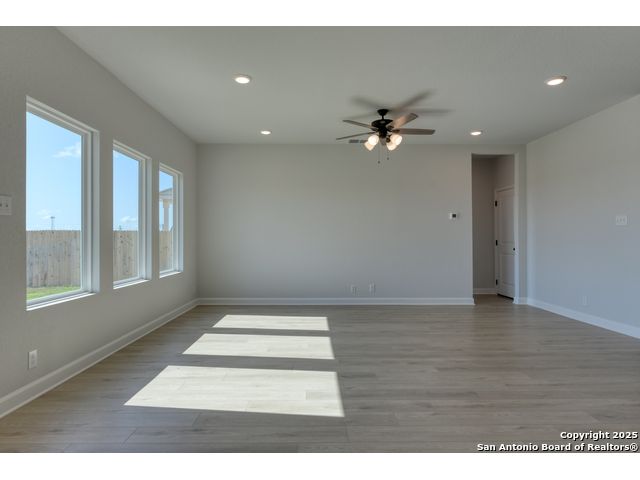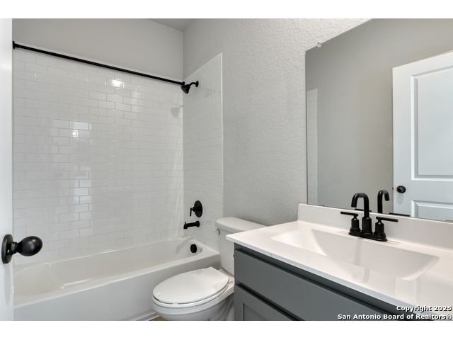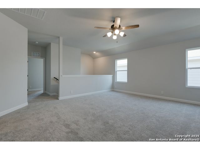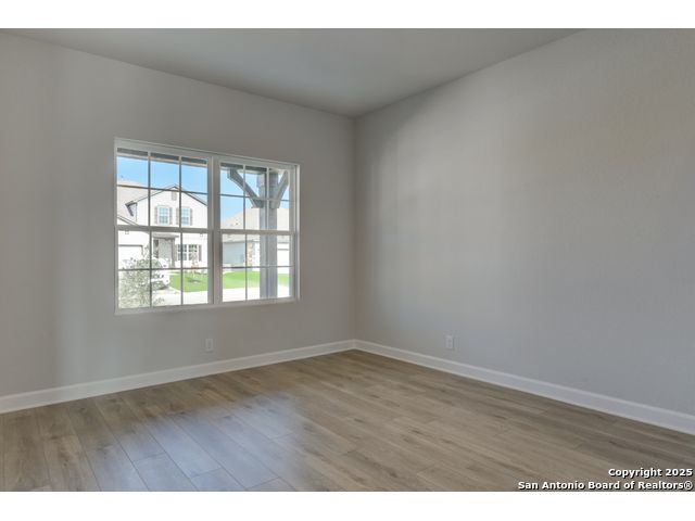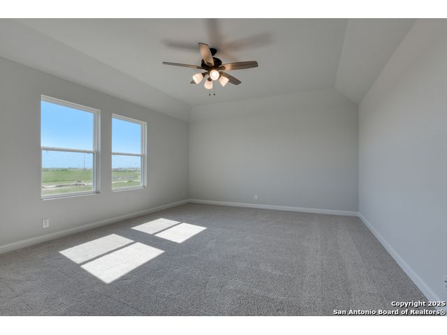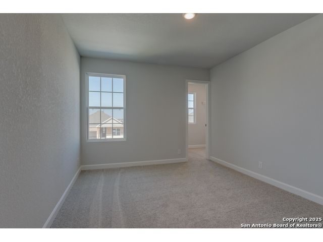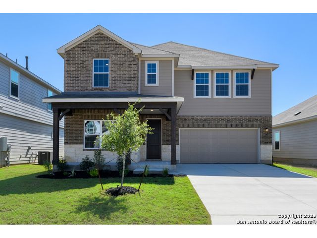 This charming two-story home is thoughtfully designed to bring comfort, style, and functionality together for modern living. At the heart of the home, the gourmet kitchen shines with upgraded 42-inch cabinets, a spacious walk-in pantry, and a center island that opens seamlessly to the expansive family room. With three large windows overlooking the backyard, the space is filled with natural light and creates a welcoming atmosphere for everything from casual evenings at home to lively gatherings with family and friends. Just off the entry, a formal dining area offers a versatile flex space-perfect as a place to host holidays and dinner parties, or to transform into a home office, library, or playroom to fit your lifestyle. On the first floor, a full secondary bedroom and bath provide the perfect retreat for guests or family members seeking additional privacy. Upstairs, the secluded primary suite offers the largest bedroom available in this community, making it a true retreat where you can unwind and recharge. The private bath features a separate shower and a generous walk-in closet, combining luxury and practicality. The second floor continues with a versatile loft, ideal for a game room, study nook, or cozy lounge, along with three additional bedrooms and a shared bath, ensuring everyone has their own comfortable space. Step outside and discover an oversized backyard, ready for outdoor living and entertaining. Whether it's backyard barbecues, a garden oasis, or plenty of space for kids and pets to play, this home gives you the room to enjoy it all. A covered patio and full landscaping package complete the picture, blending indoor comfort with outdoor enjoyment in a home designed for everyday living. This home is part of our Minimalist Collection-where simplicity makes space for life's best moments. Clean lines, sharp contrasts, and striking negative space form a backdrop as stunning as it is calming. Whether you're prepping for a gallery opening or unwinding from the night before, Minimalist design offers room for clarity, creativity, and comfort-black tee casual or black-tie elegant, always beautiful in its simplicity. This home is located in Cordova Trails-a community that blends adventure and relaxation. With Highway 46 nearby, scenic Hill Country drives, hiking trails, and local wineries are just moments away. After a day of exploring, unwind with family and friends in the comfort of home. And when it's time for dining or entertainment, New Braunfels and Seguin offer vibrant options just a short drive away. Cordova Trails puts the best of Texas living right outside your door.