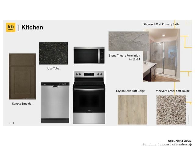 This thoughtfully designed home features 9-ft. first floor ceilings and stylish finishes throughout. The kitchen offers Whirlpool stainless steel appliances, Woodmont Cody 42-in. upper cabinets, a Daltile tile backsplash, extended breakfast bar, and granite countertops in Arctic Pearl. The primary bath boasts upgraded cabinets and a 42-in. garden tub/shower with Daltile tile surround. Decorative touches include a Carrara-style entry door, Kwikset Polo knob hardware, and Stone Theory ceramic tile flooring in the bathrooms, kitchen, and great room. Enjoy added convenience with a wireless security system, soft water loop, fully sodded yard, and automatic sprinkler system.