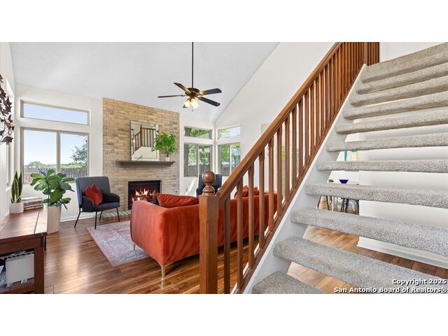 Welcome Home! Step inside this charming residence featuring a cozy fireplace and an updated kitchen with quartz countertops, soft-close cabinets, and fresh paint throughout. The spacious backyard backs up to Converse Park, offering peaceful views of the lake-perfect for relaxing or fishing just steps from your living room! Upstairs, you'll find all bedrooms conveniently located together, while the flexible downstairs room can serve as a study, playroom, or 4th bedroom. Nestled in a well-established neighborhood with family-friendly amenities, this home combines comfort, convenience, and a prime location-and best of all, there's no HOA!