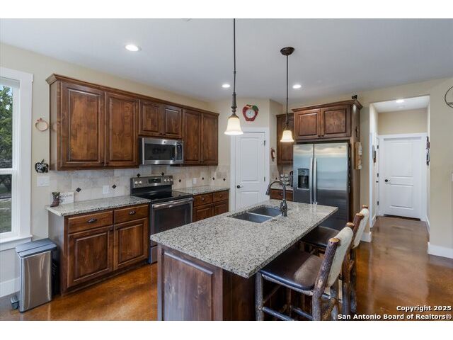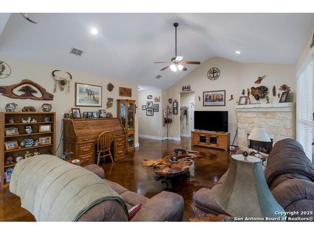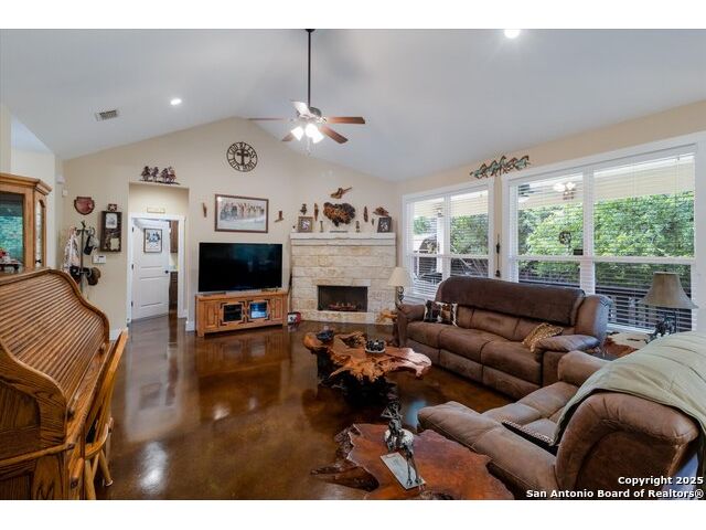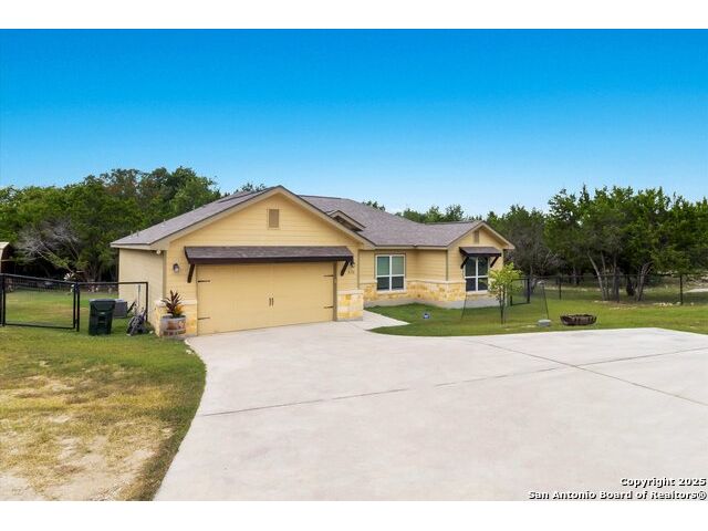 Beautifully Maintained 3/2/2 Home on Nearly an Acre - Prime Location! This lovingly cared-for home offers the perfect blend of comfort, convenience, and low-maintenance living. Situated on a spacious cul-de-sac lot just under an acre, this 3-bedroom, 2-bathroom, 2-car garage home features stained concrete floors throughout, high ceilings, and custom cabinetry - combining durability with style. Enjoy the ease of single-story living with an open layout designed for everyday comfort and entertaining. The property includes dedicated RV and boat storage, making it ideal for outdoor enthusiasts. Located within walking distance to the local high school and just minutes from shopping, dining, and recreational activities. With easy access to New Braunfels, San Antonio, Wimberley, and San Marcos, you'll love the central location that doesn't sacrifice space or privacy. Some furnishings are negotiable - making this move-in-ready home even more appealing!