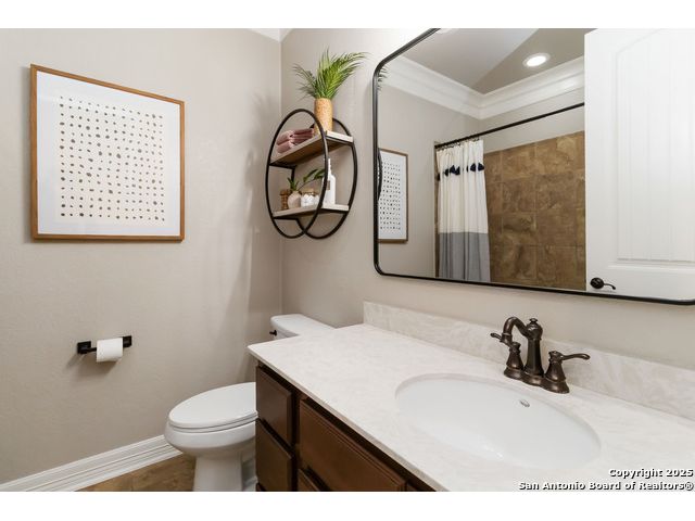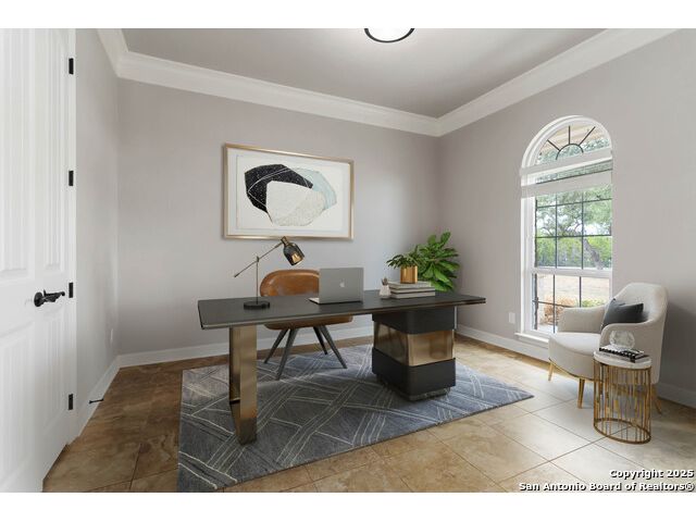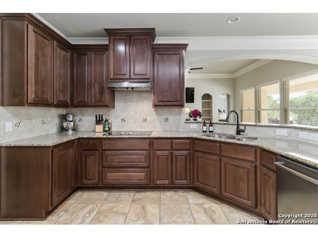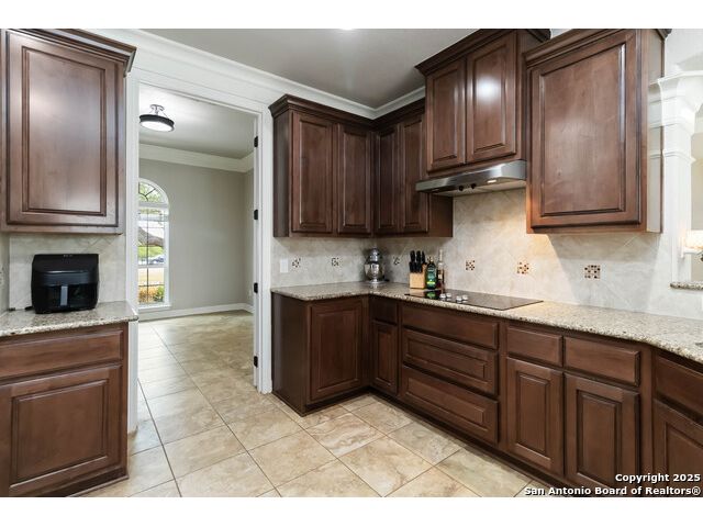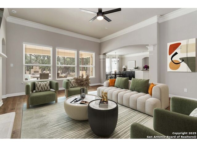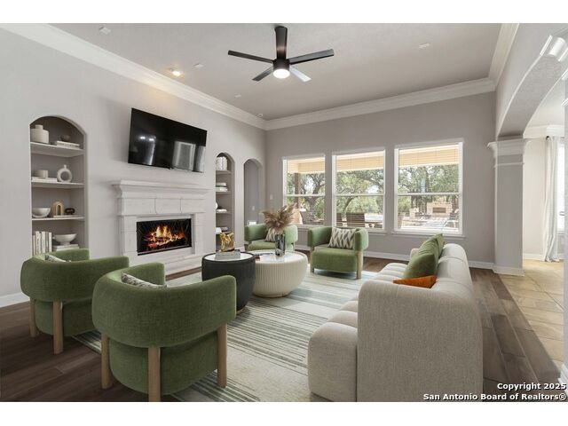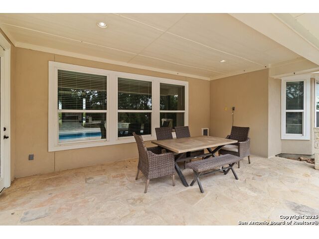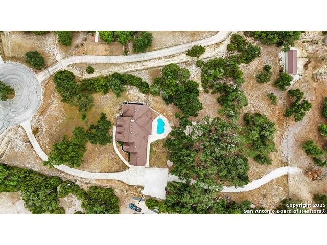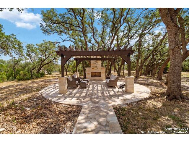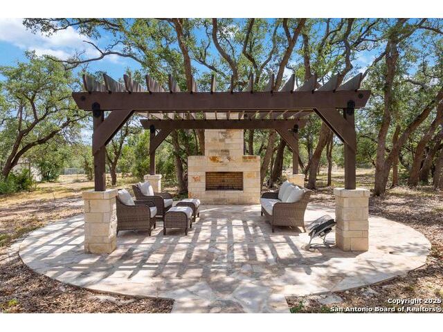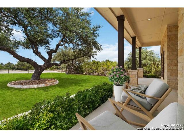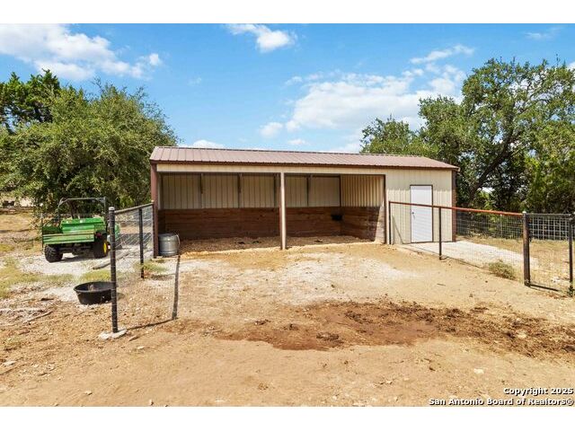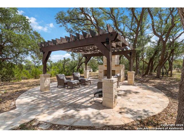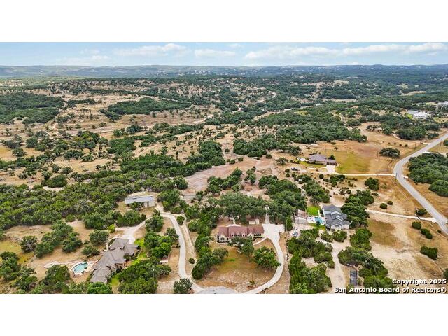Nestled in the rolling hills of the Texas Hill Country, this 5.15-acre majestic oak tree studded estate is the desirable gated community of Rebecca Creek offering the perfect blend of country charm and refined living-all just under an hour from downtown San Antonio. As you enter through the electric gates and fully fenced grounds, you're welcomed into a private oasis designed for both equestrian enthusiasts and those who love to entertain. Horse lovers will appreciate the two-stall barn with tack room, corrals, and wide-open, cleared acreage for roaming. The backyard retreat is nothing short of extraordinary. A sparkling in-ground pool with a cascading waterfall sets a serene tone, while the expansive arbor and all-stone outdoor fireplace create a magical space for evenings under the stars. The stone-accented Hill Country-style residence greets you with a covered front porch spanning the length of the home. Inside, an open-concept design flows seamlessly across designer tile flooring, creating a bright and inviting atmosphere. The spacious living room, anchored by a cozy fireplace and built-in shelving, transitions effortlessly into the chef's kitchen featuring 42" cabinetry, stainless steel appliances, a breakfast bar, and walk-in pantry. The primary suite is a true retreat, offering a spa-like bath with a soaking tub and walk-in shower. Additional accommodations include a private guest suite with full bath, plus two secondary bedrooms sharing a Jack-and-Jill bath. A dedicated study, set behind French doors at the entry, provides a quiet space with views of the sprawling front landscape. This Canyon Lake estate offers the rare opportunity to embrace the best of Hill Country living-space for your horses, a backyard built for gatherings, and a beautifully designed home that balances rustic charm with modern comfort.