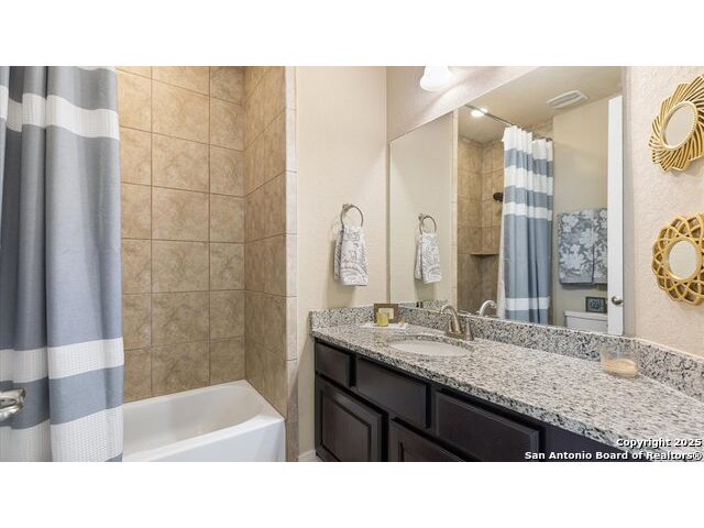 VA assumable loan 4.25%. Elegant one-story home in Potranco Ranch sits on half an acre and offers a rare VA assumable loan 4.25%, with a manageable gap to cover. Thoughtfully designed, the layout features a dedicated home office, a separate dining area, and a versatile flex space between the secondary bedrooms. Guests will appreciate their own private suite, while the chef's kitchen boasts custom cabinetry, a walk-in pantry, large island, and breakfast nook. The owner's suite is a true retreat with a bay window, double vanity, spacious shower, and a generous walk-in closet. Experience the perfect blend of country living and modern comfort, all just minutes from HEB, military bases, major highways, a new hospital, world-class shopping, SeaWorld, and top-rated schools.