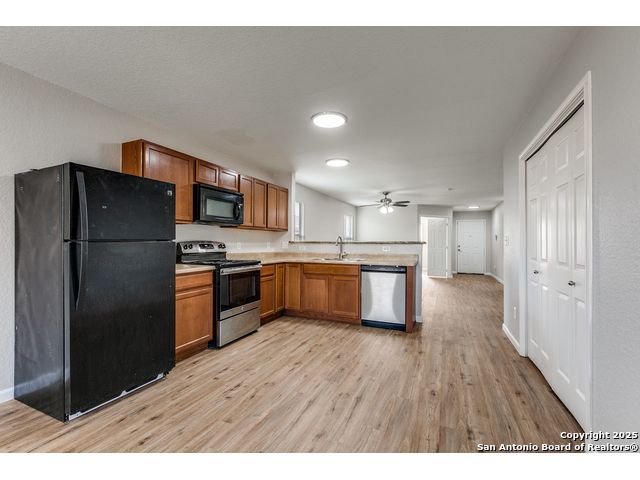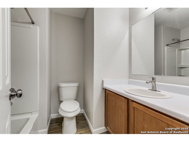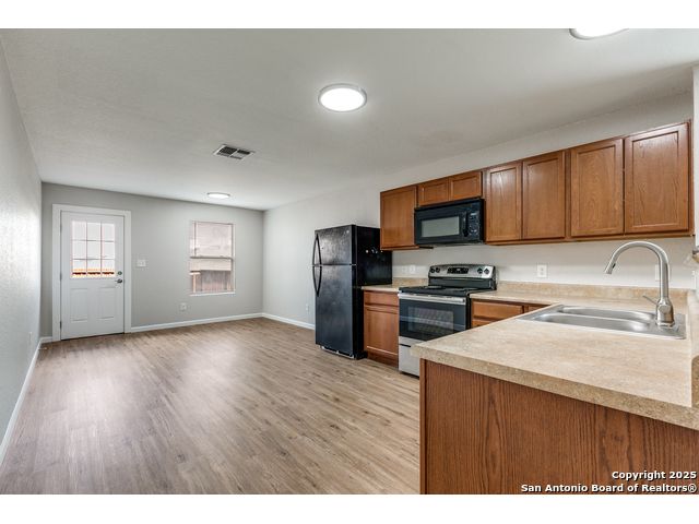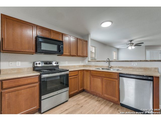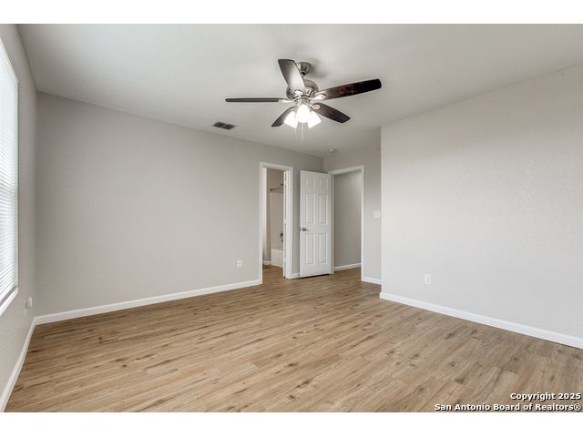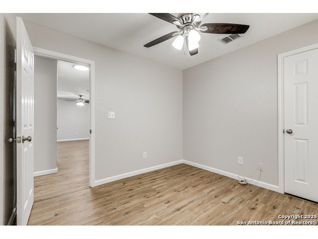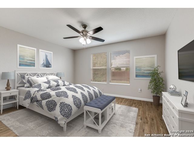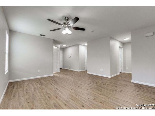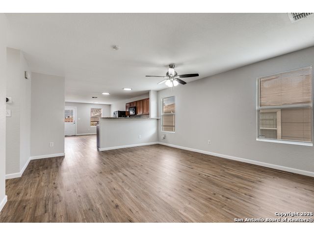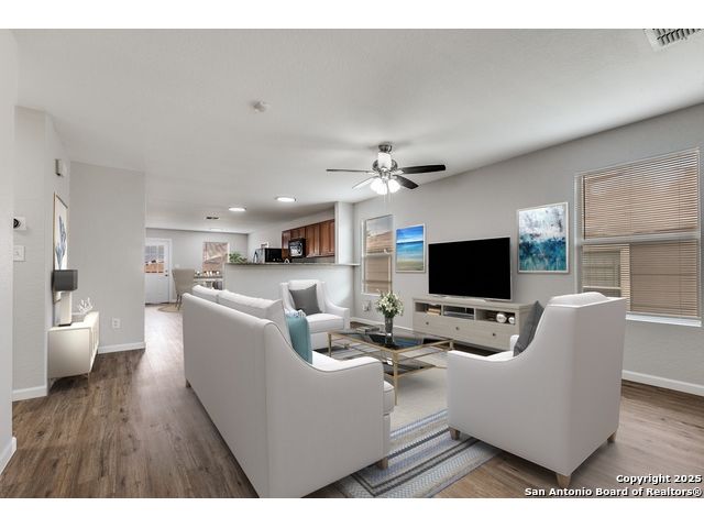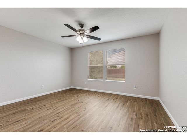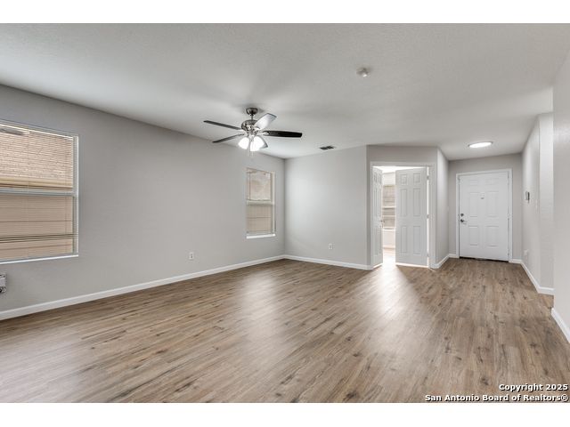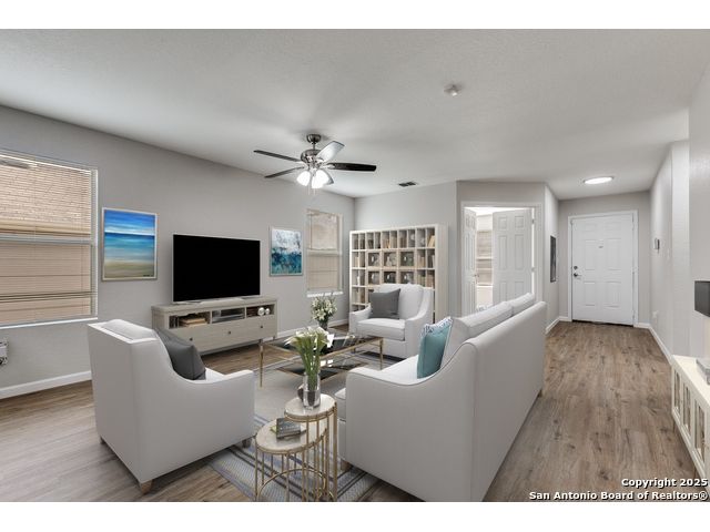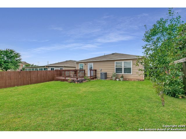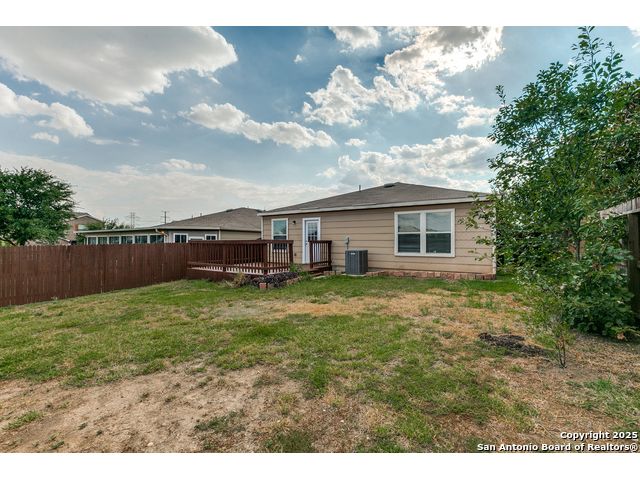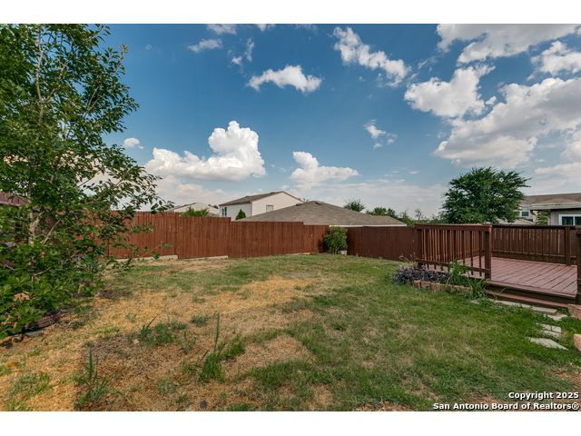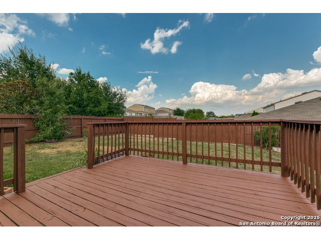 Come check out this beautiful freshly painted turnkey home near Lackland AFB with laminate flooring throughout, FRESH NEUTRAL PAINT, blinds and ceiling fans throughout. NO CARPETS IN THE HOUSE!!! This gem features 1528 sq ft living space, 3 bedrooms, 2 bathrooms, and a study/office by the front entry. Its inviting foyer opens to a large living room/dining room combo perfect for entertaining. The kitchen boasts complete appliances, breakfast bar, eat in area, and lots of cabinets and pantry for storage. The master suite is in the corner of the house for optimum privacy. It comes with spacious walk in closet, and separate tub/shower. Backyard entertaining with a large deck with this home's large fenced yard. With quick access to 1604 and 90. Minutes to Lackland AFB, SeaWorld, Costco 1604, Super Walmart. Pride of ownership through out! Amenity center has a pool and playground. Come see this gem today.