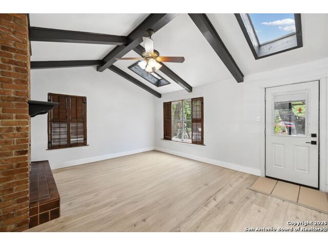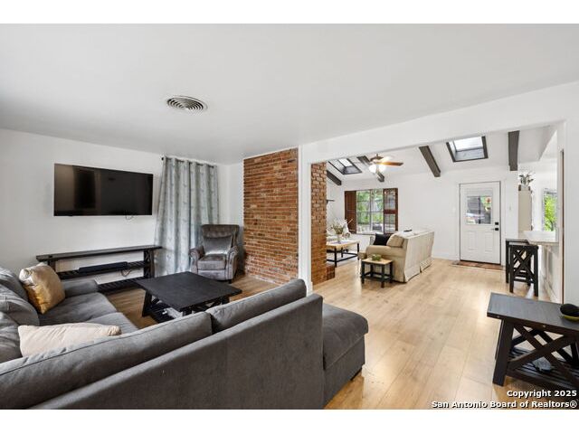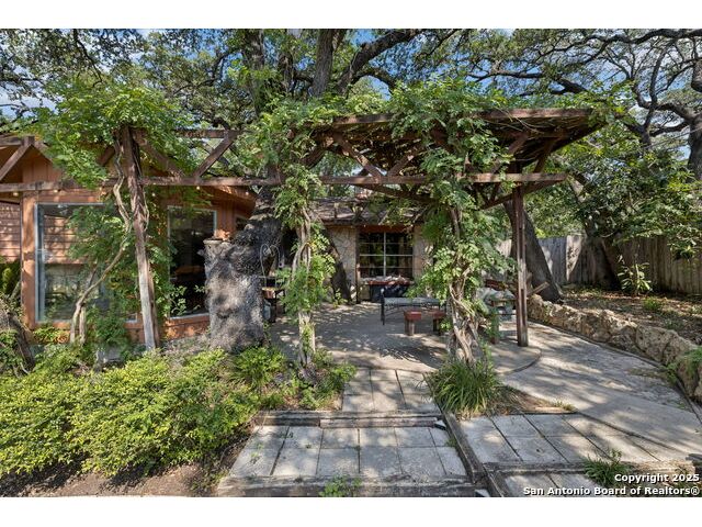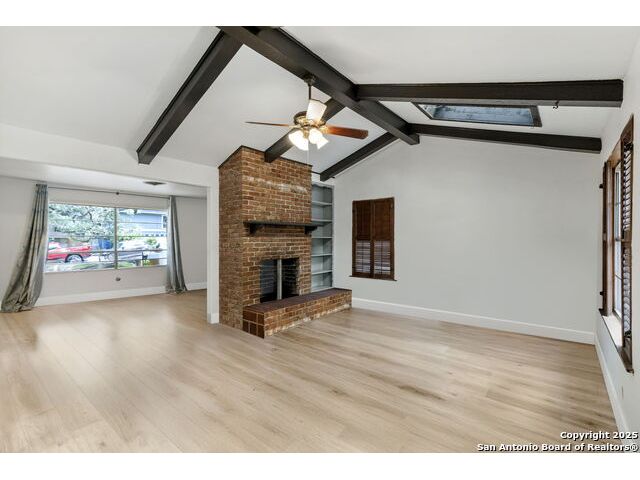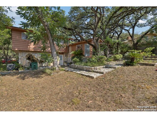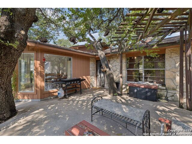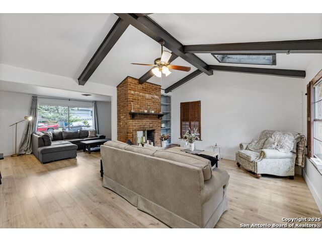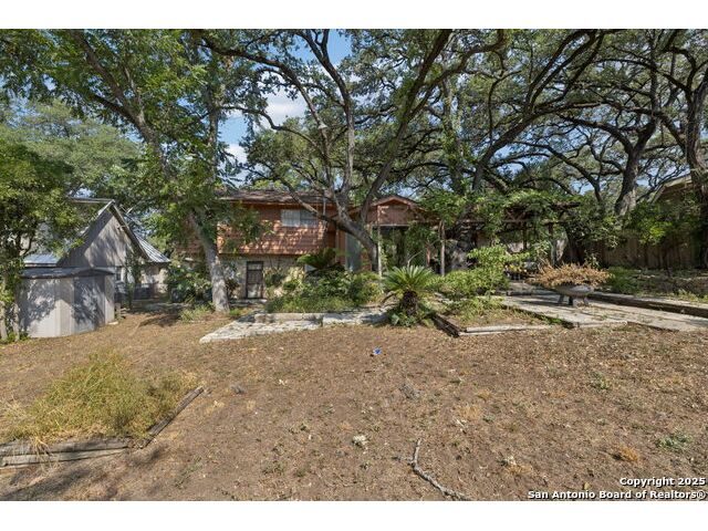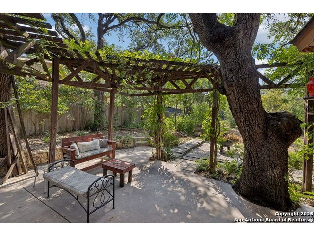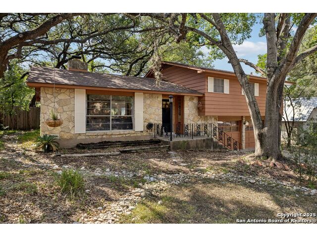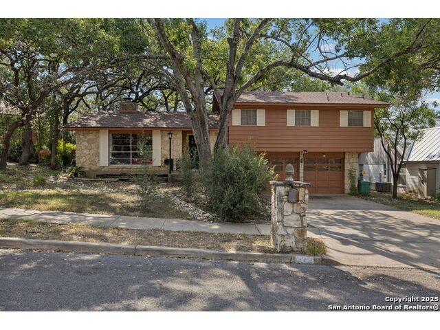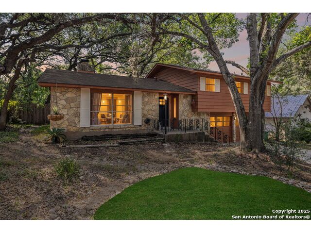 Welcome to your dream home nestled in the highly thought-after central community of Dreamland Oaks. Step inside to discover a warm, inviting, open floor plan perfect for everyday living and entertaining. The living area has abundant natural light and a brick fireplace with lots of skylights. Entertain guests effortlessly in the very open kitchen. The interior of this home is full of unique charm with a mid-century rustic feel. Walk into a very large back patio with pergola type cover overlooking into an expansive backyard, sorrounded by lush mature trees, a true backyard paradise and backing up to a greenbelt. The home is a 3 Bedroom, 2.5 Baths with many updates like new flooring, paint, light fixtures, ceiling fans, kitchen cooktop and tile backsplash and faucet. Enjoy the outdoors and feel like you are living in the country yet only minutes away for the Texas Med Center, USAA and Hardberger Park.