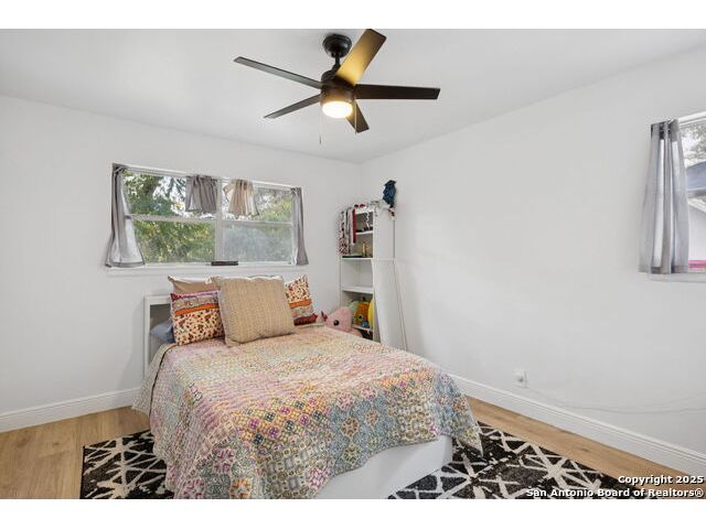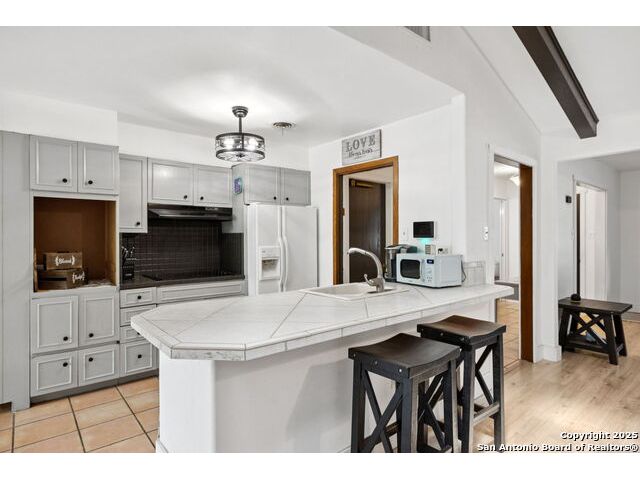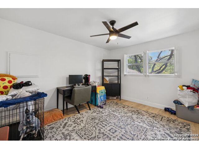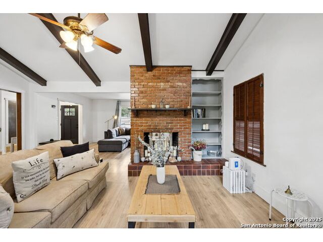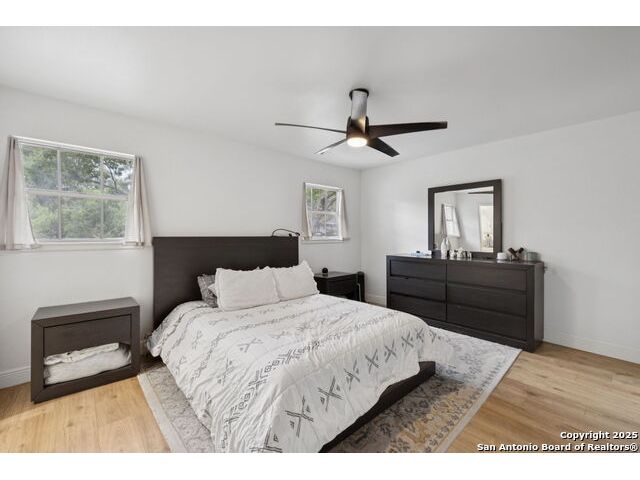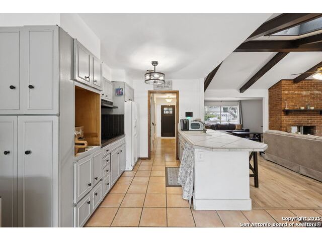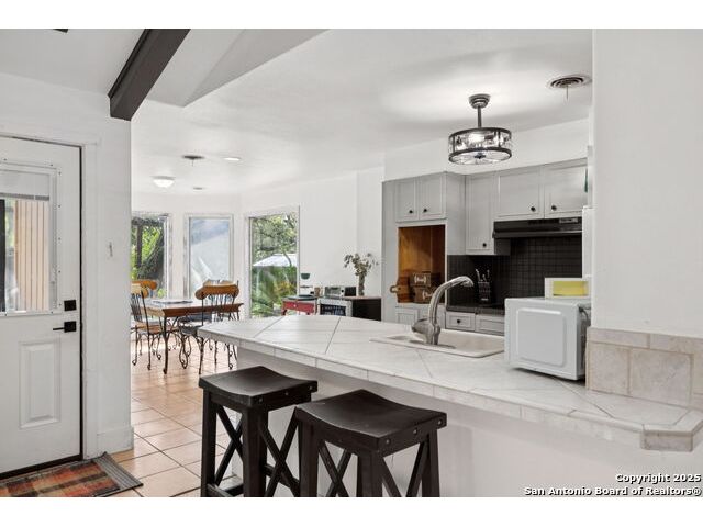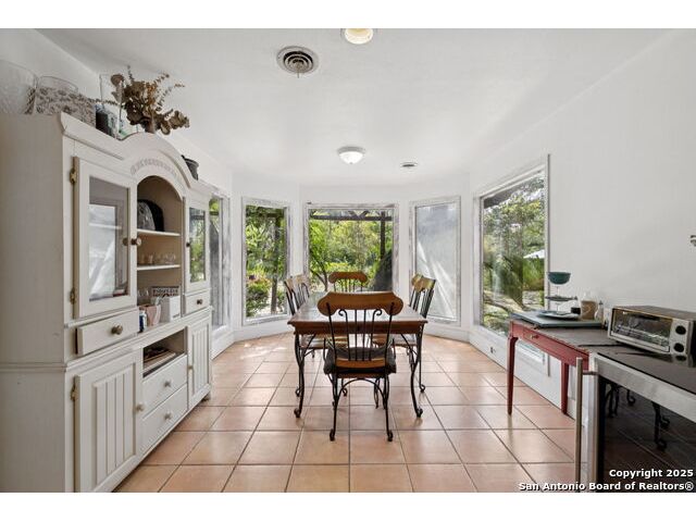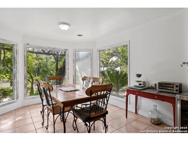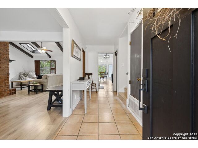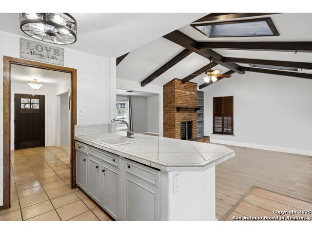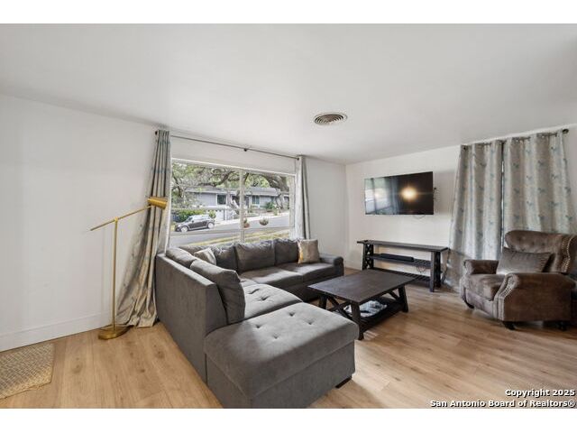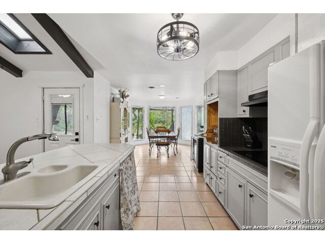 Welcome to your dream home nestled in the highly thought-after central community of Dreamland Oaks. Step inside to discover a warm, inviting, open floor plan perfect for everyday living and entertaining. The living area has abundant natural light and a brick fireplace with lots of skylights. Entertain guests effortlessly in the very open kitchen. The interior of this home is full of unique charm with a mid-century rustic feel. Walk into a very large back patio with pergola type cover overlooking into an expansive backyard, sorrounded by lush mature trees, a true backyard paradise and backing up to a greenbelt. The home is a 3 Bedroom, 2.5 Baths with many updates like new flooring, paint, light fixtures, ceiling fans, kitchen cooktop and tile backsplash and faucet. Enjoy the outdoors and feel like you are living in the country yet only minutes away for the Texas Med Center, USAA and Hardberger Park.
