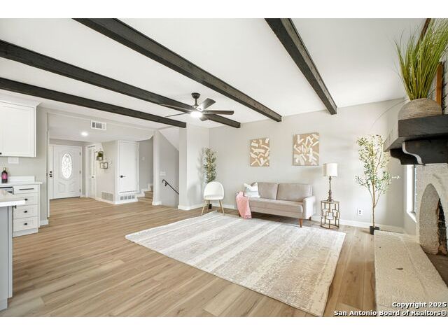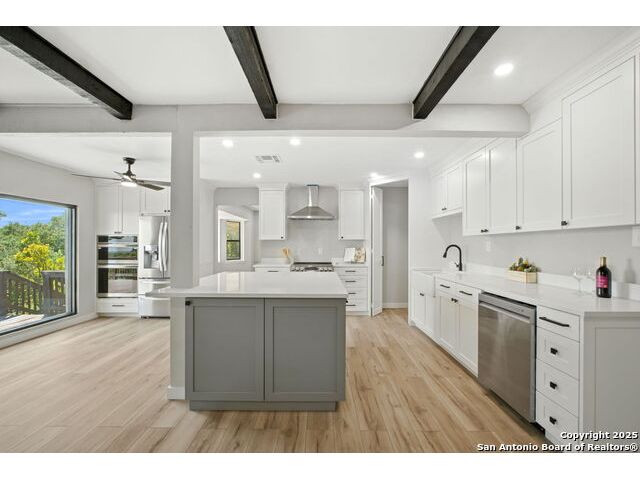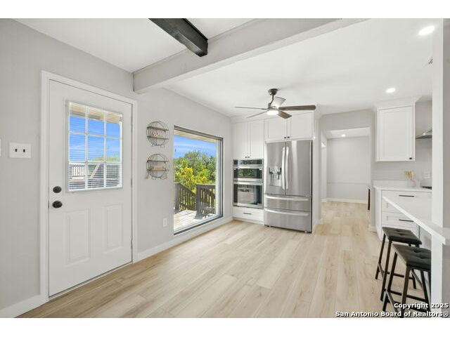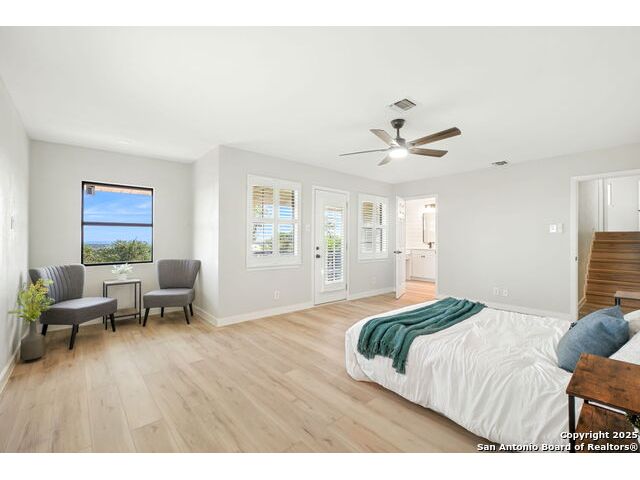 Welcome Home ! Life feels a little slower and sweeter at the top of the hill in Helotes Park Estates. From the moment you step inside, the Hill Country views steal the show, seen from almost every bedroom and even while you are cooking dinner in the kitchen. This 5 bedroom, 3 bath split level home on 1 acre is designed with everyday living in mind. The kitchen comes with a full LG appliance package and plenty of storage thanks to the custom cabinets and butler's pantry. A formal dining room is ready for family dinners, while the double door office makes working from home simple and private. The primary suite is its own retreat, complete with a cozy sitting area, access to the back deck, and a peaceful view you will look forward to waking up to every morning. When it is time to relax, the deck is the perfect spot to soak in the sunsets and serenity of the hill country. Everyday details are just as impressive, including a large laundry room with built in sink that makes chores a little more convenient. The 2 car garage adds even more functionality with epoxy coated floors, storage cabinets, and shelving that keep everything organized and in its place. Come see why life really is better at the top of the hill. Schedule your private showing today.